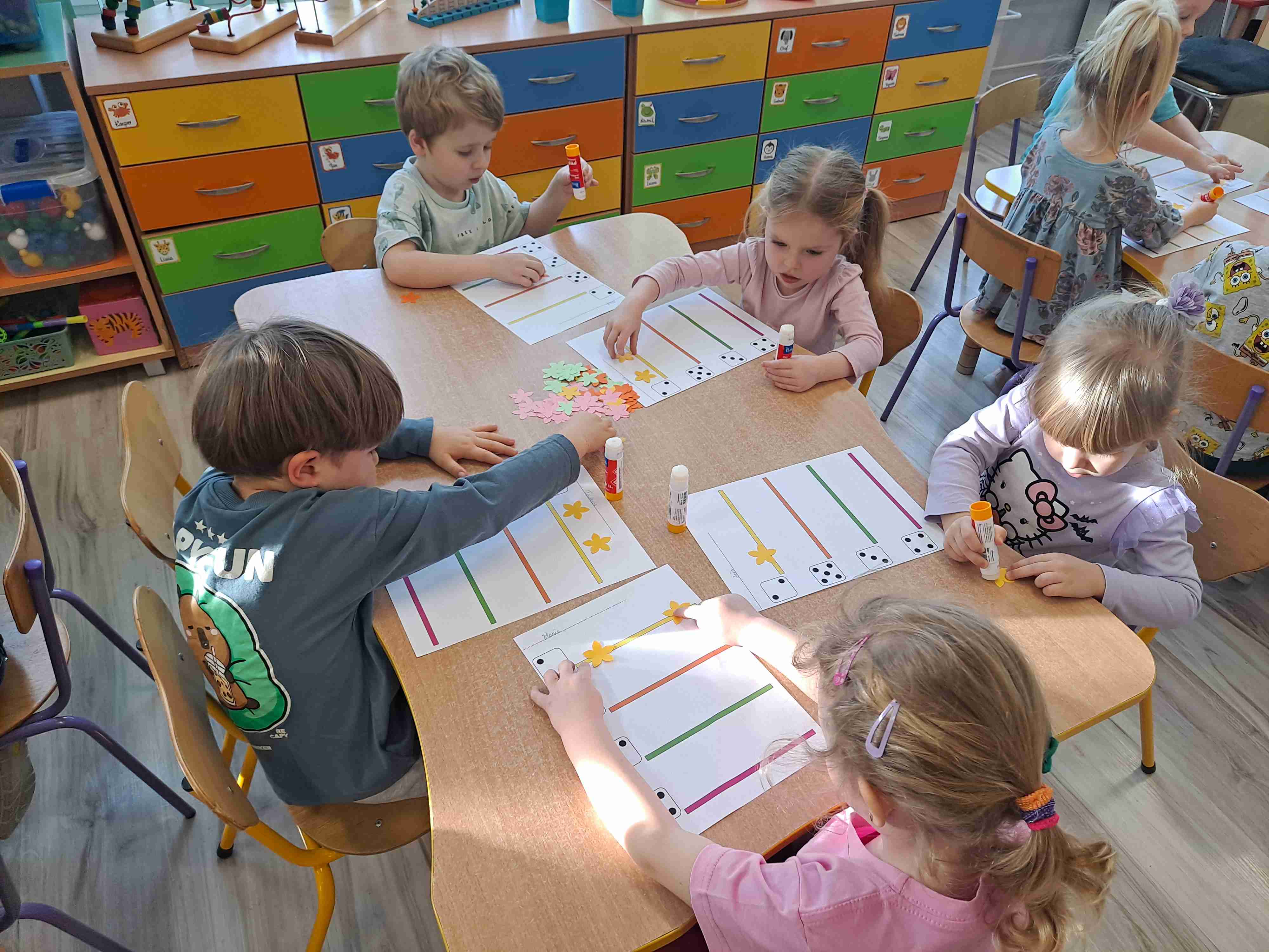 Ćwiczenie to wspierało naukę prawidłowego liczenia, rozpoznawania kolorów oraz kolorowania w konturach, rozwijając jednocześnie sprawność manualną i koncentrację.