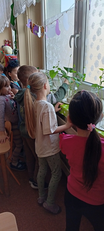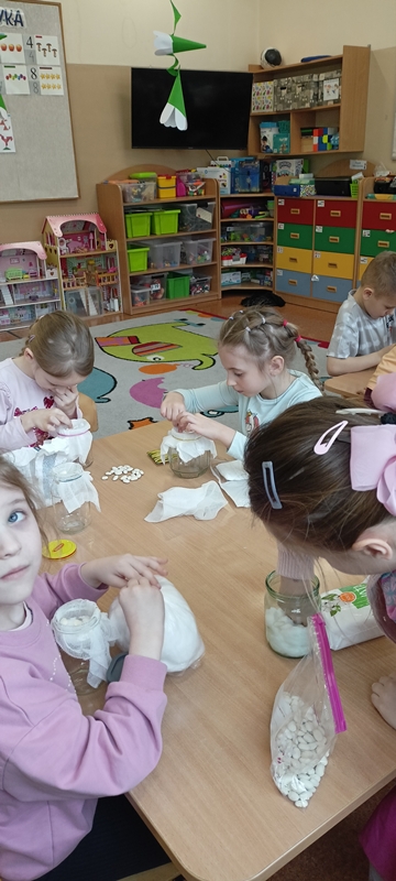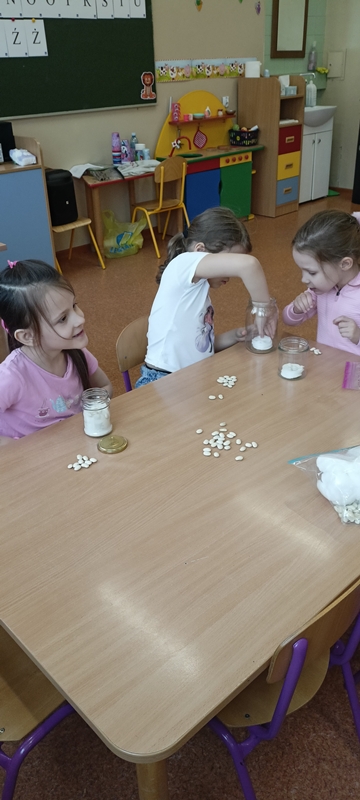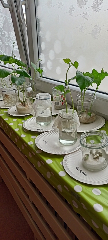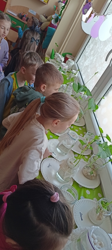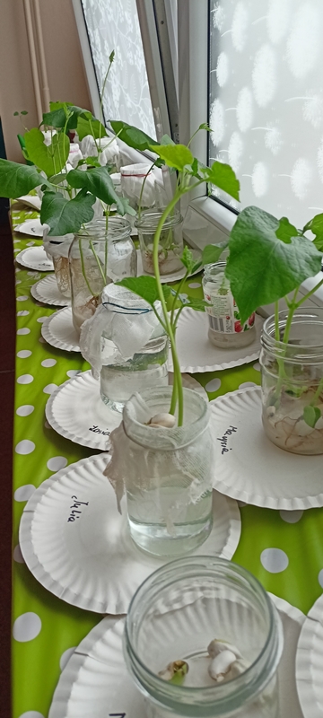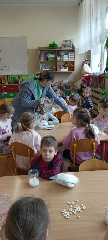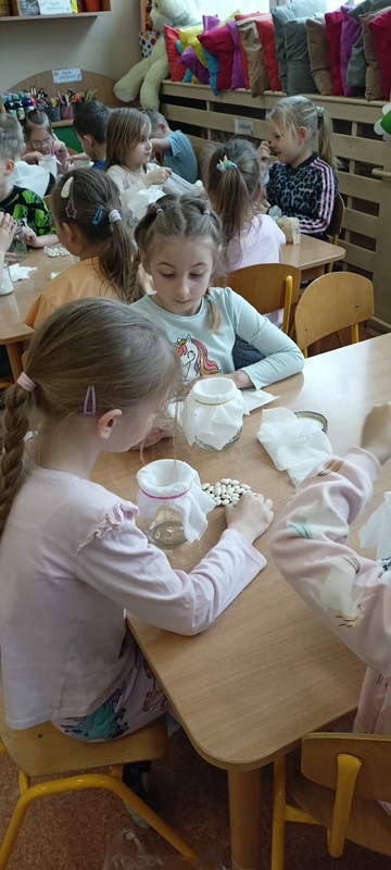 W marcu dzieci z naszej grupy zakładały hodowlę fasoli. Dzieci miały możliwość obserwowania etapów rozwoju roślin, poznania czynników niezbędnych do kiełkowania i wzrostu ( woda, światło, ciepło). Zajęcia tego typu, pozwalają zrozumieć cykl życiowy roślin od nasiona do sadzonki. Hodowla roślin nauczyła dzieci odpowiedzialności i podstaw botaniki.