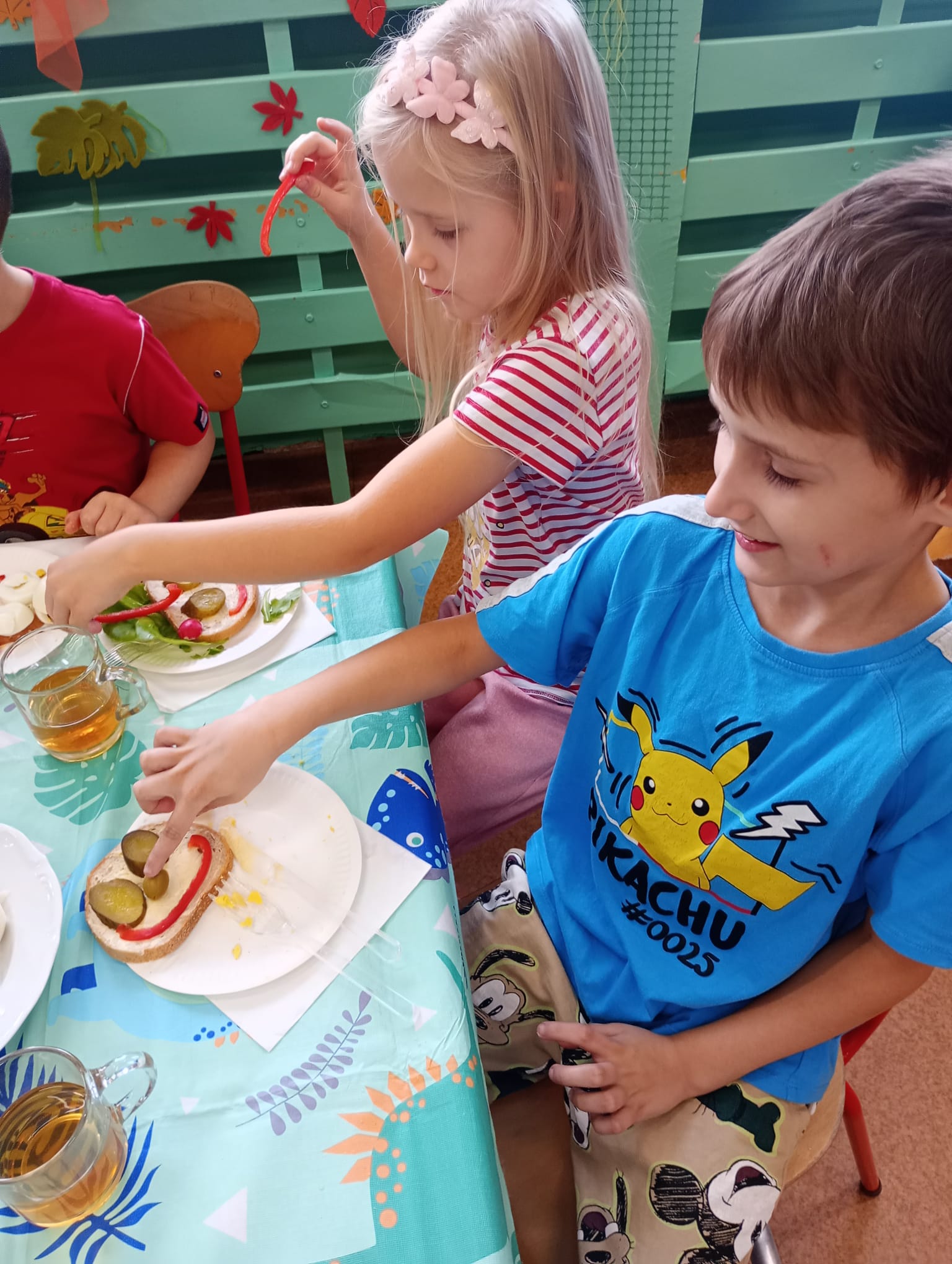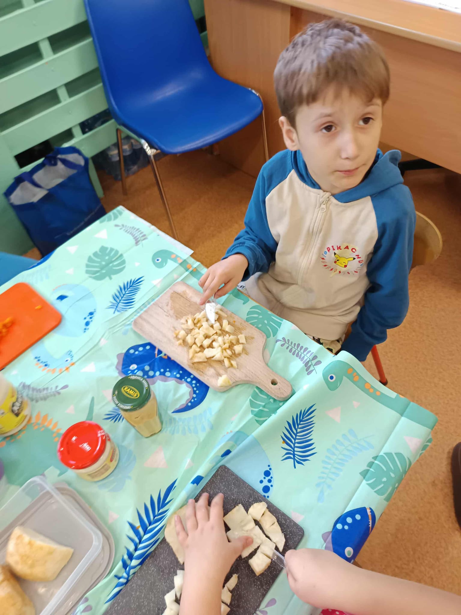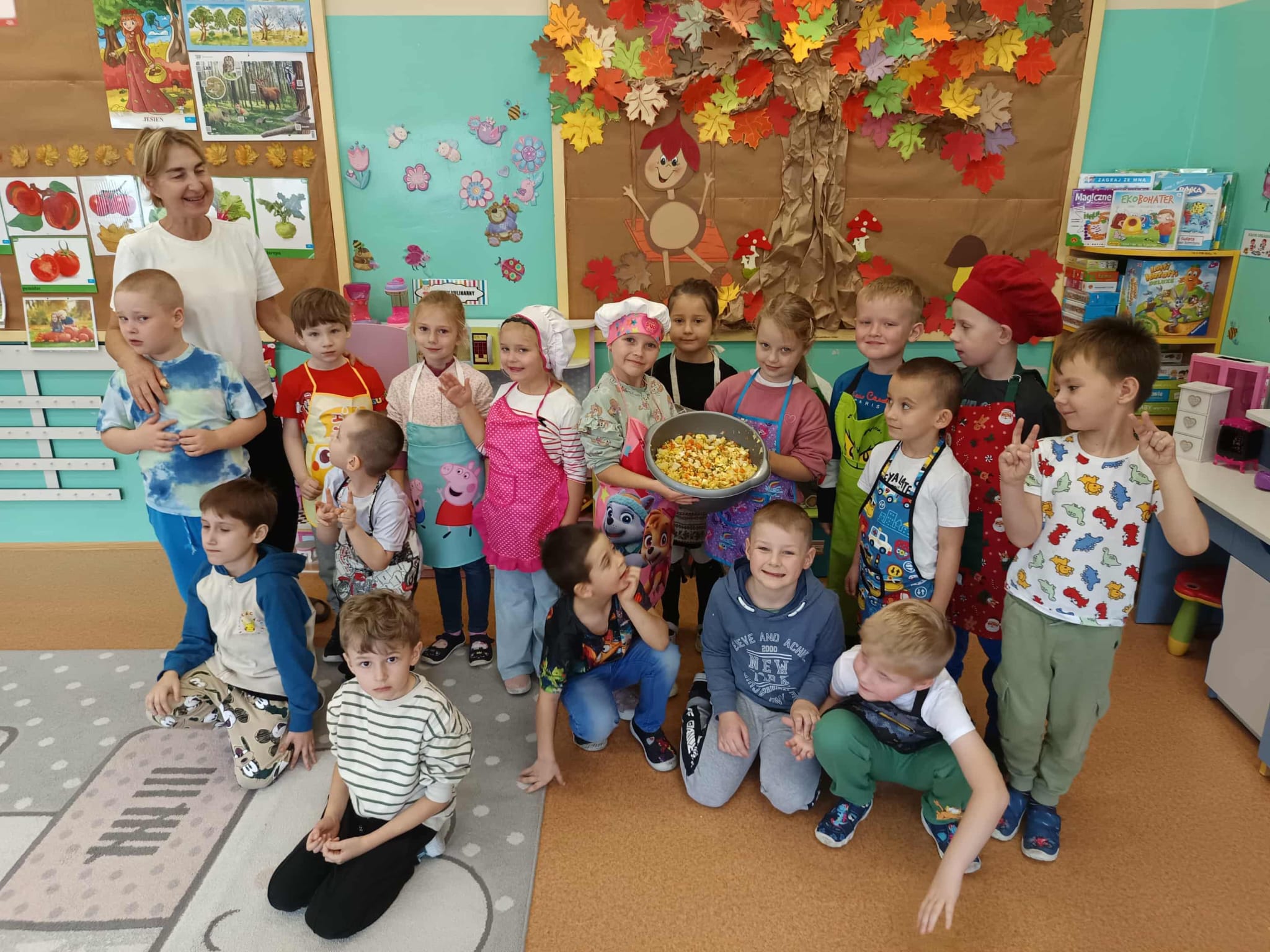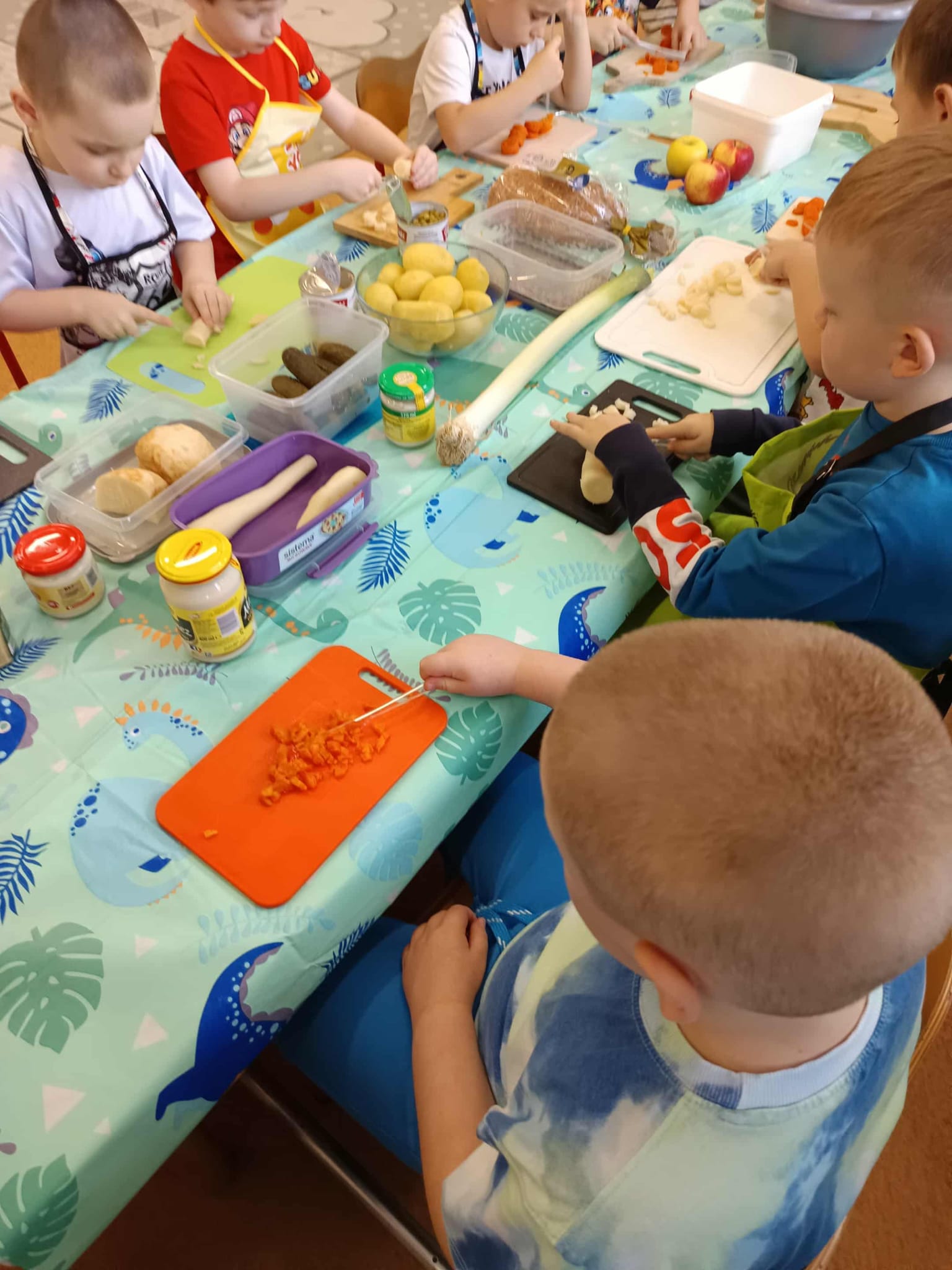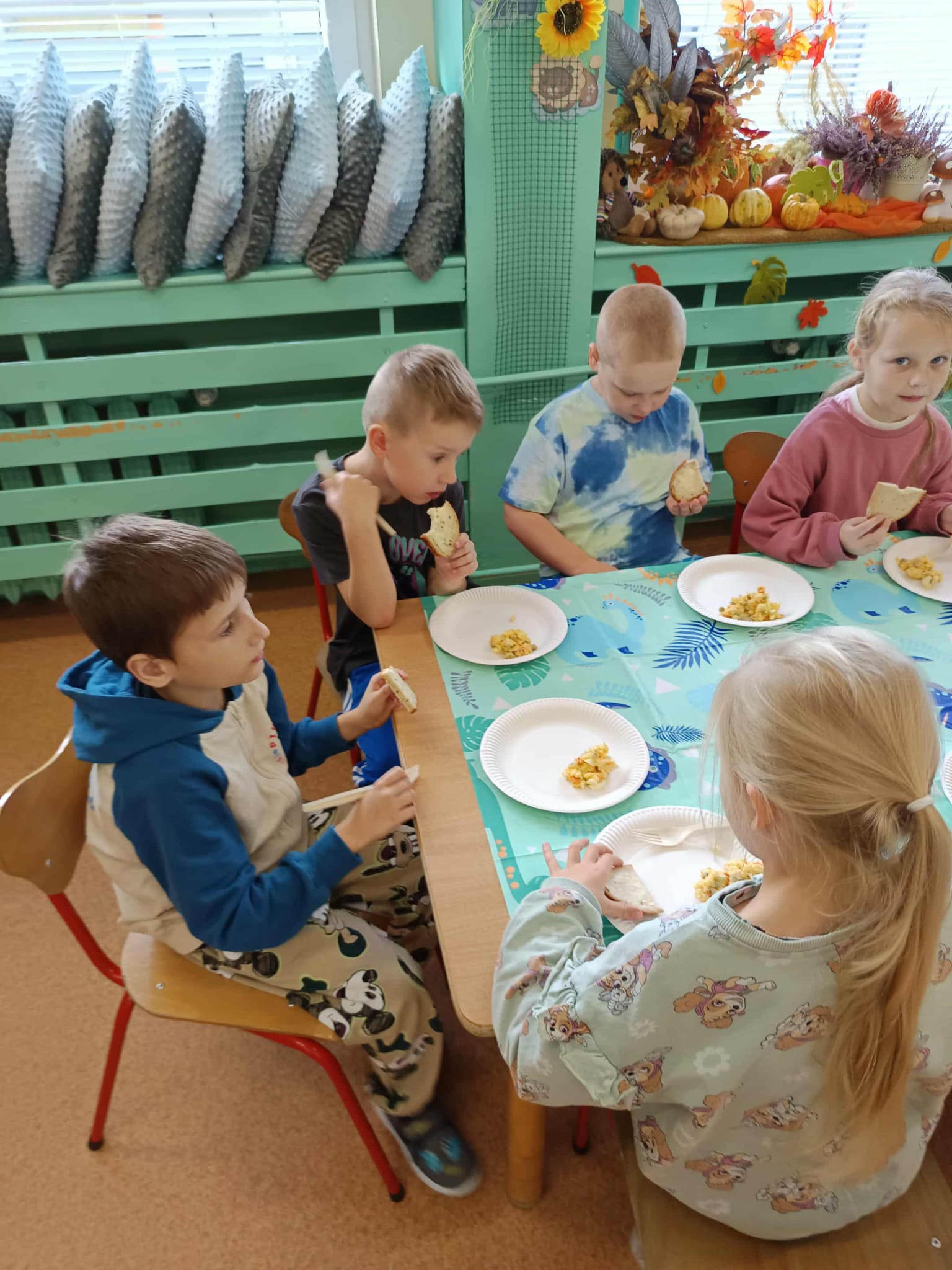 Dzieci z grupy Rumianki dbając o zdrowie wspólnie przygotowały warzywną sałatkę oraz na śniadanie zdrowe, kolorowe kanapeczki z różnych warzyw. Wspólnie przygotowane śniadanie bardzo smakowało przedszkolakom, następne zapewne przygotują dla rodziców w domu.