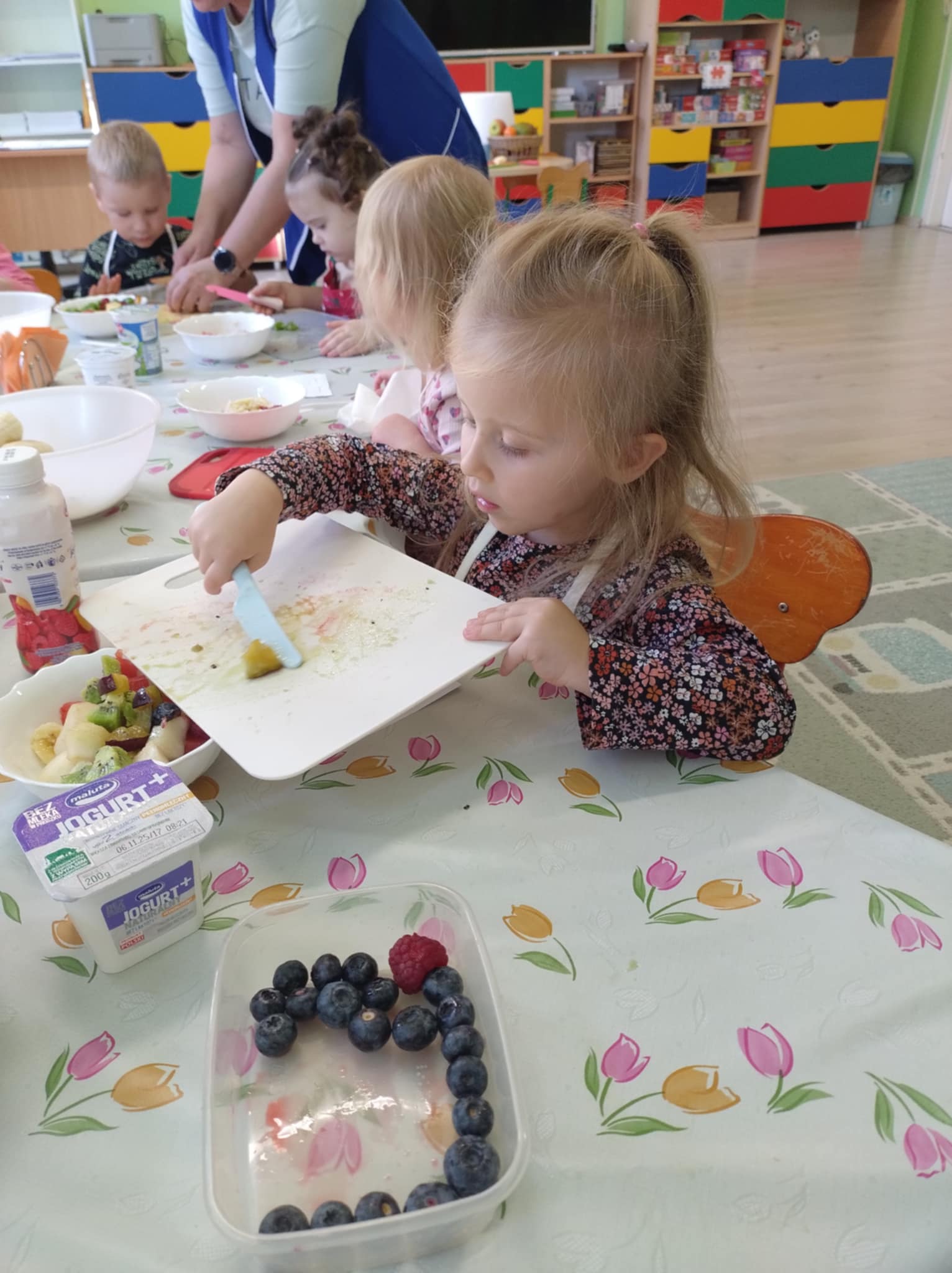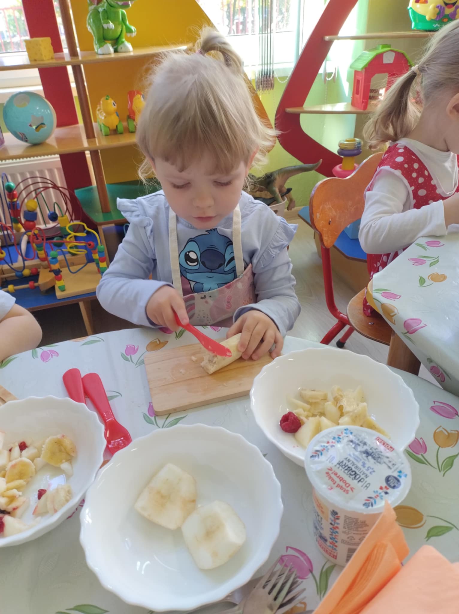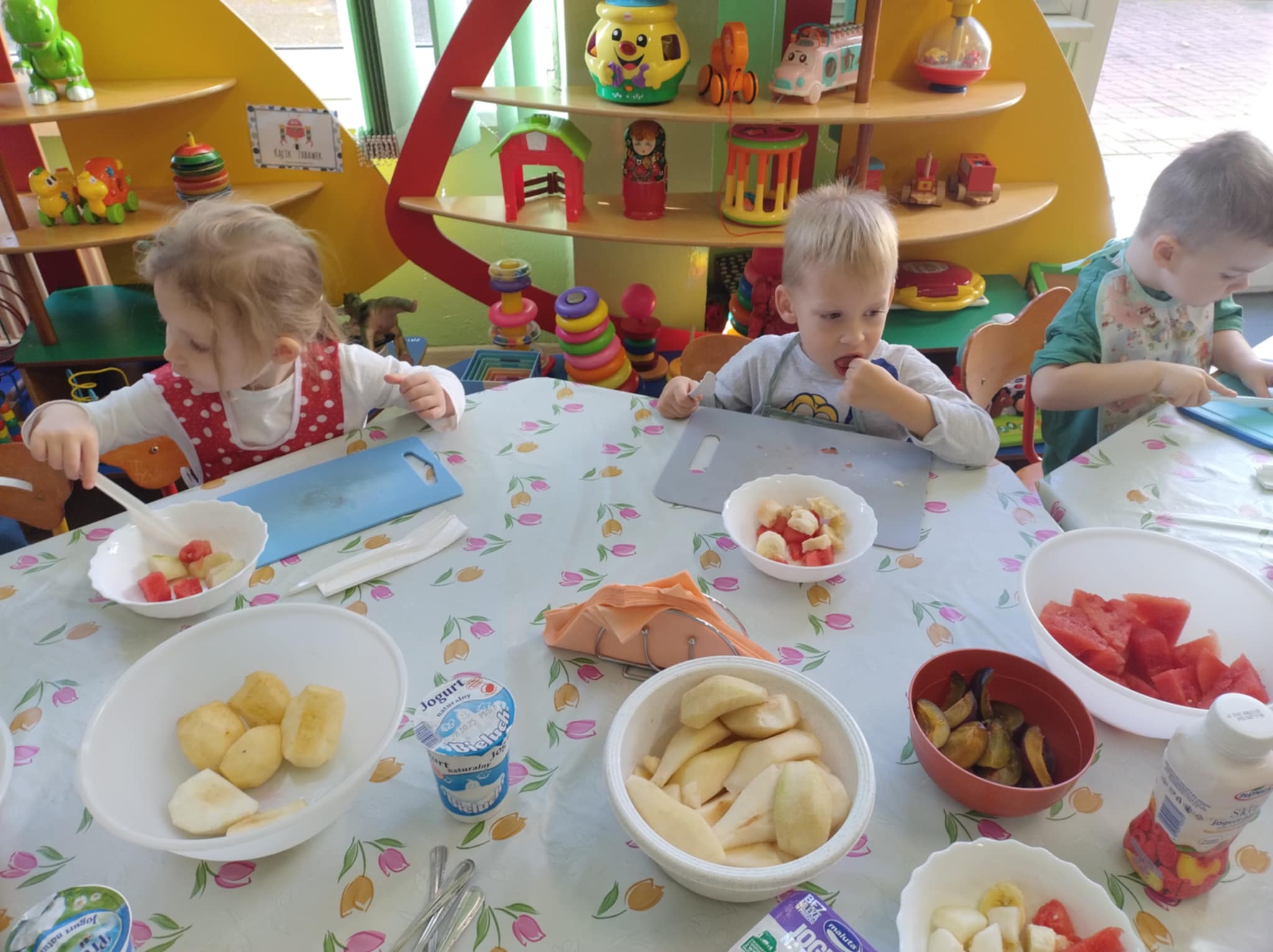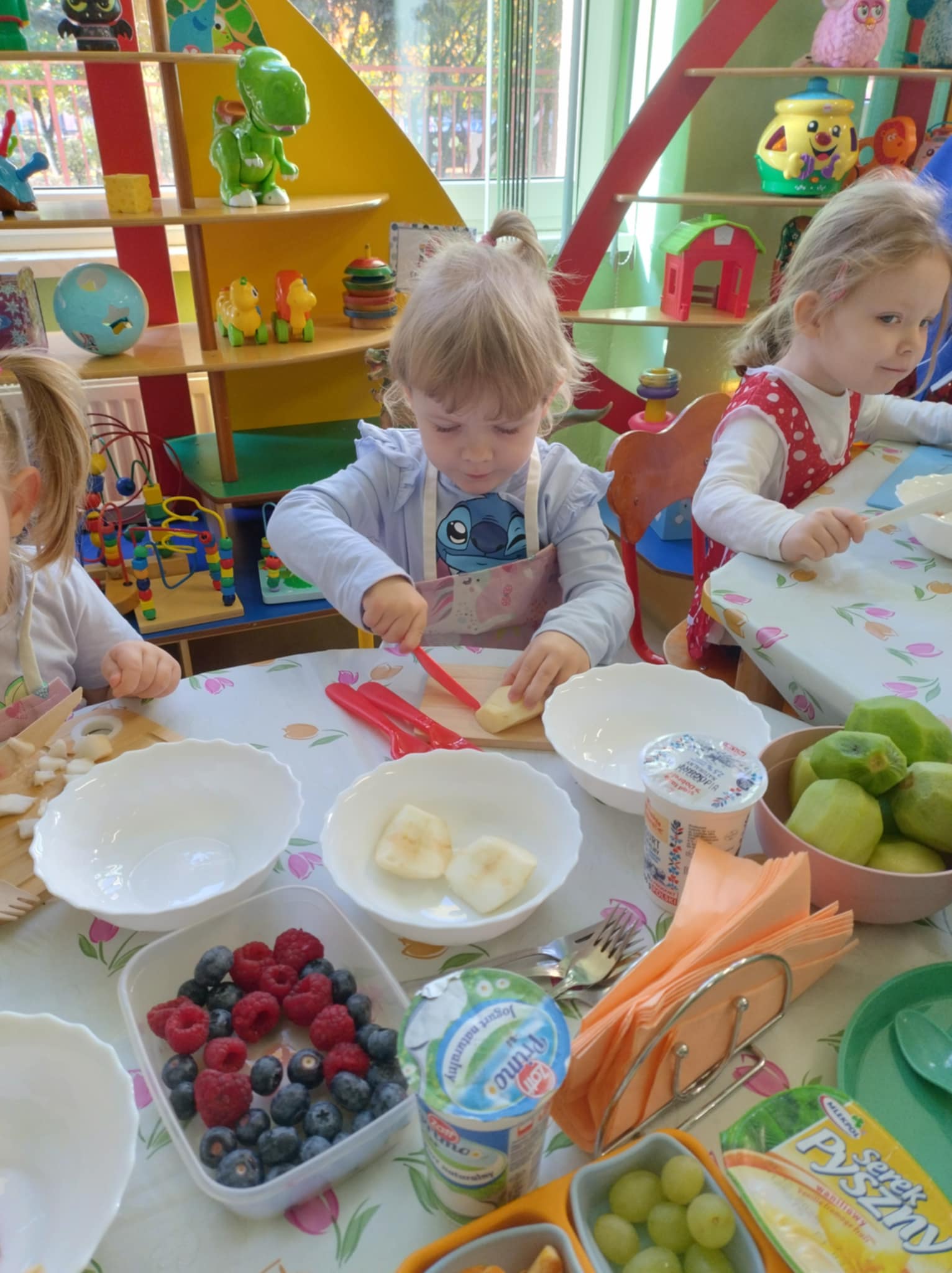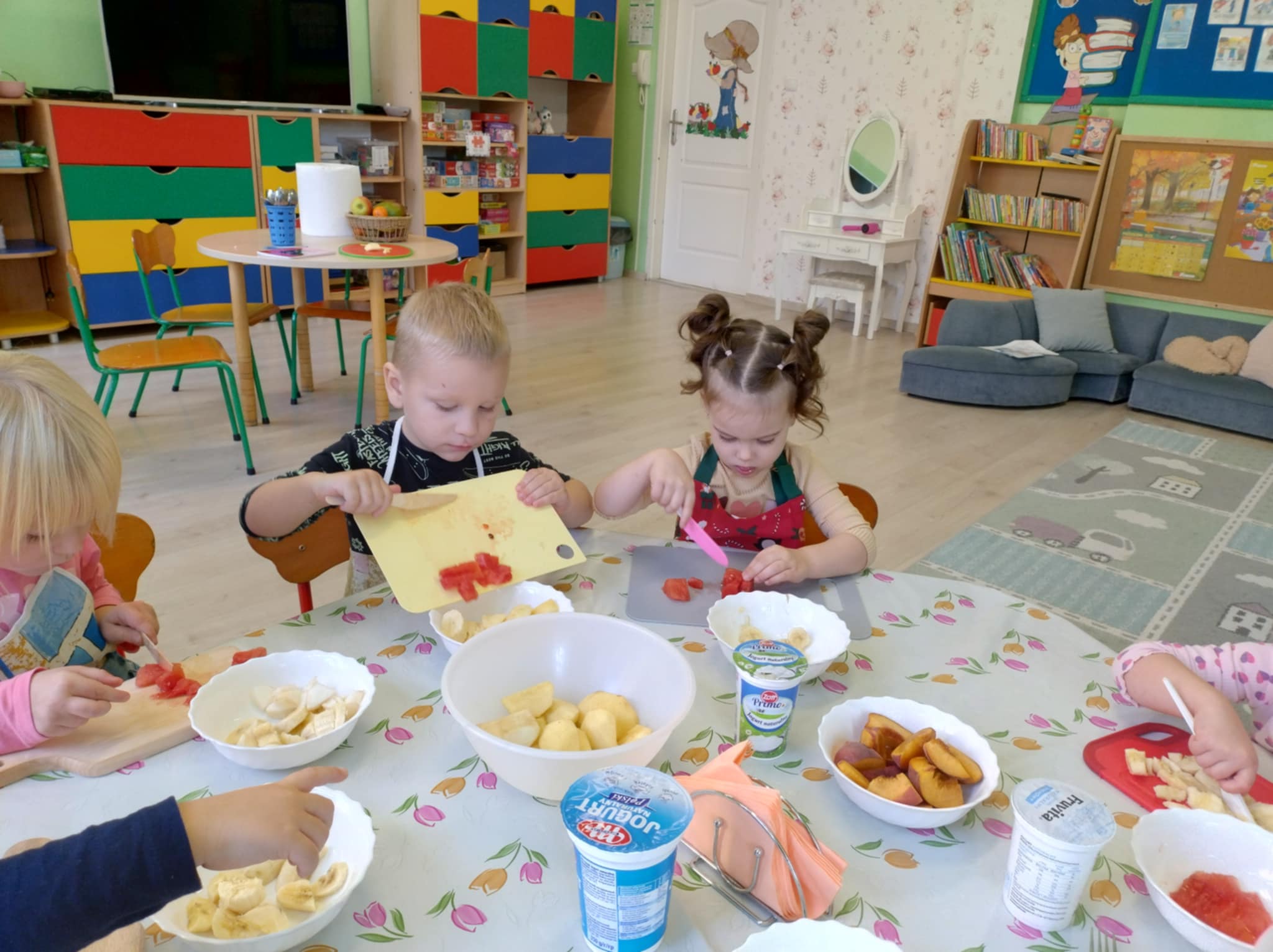 Dziś w naszym przedszkolu przedszkolaki robiły sałatkę owocową!