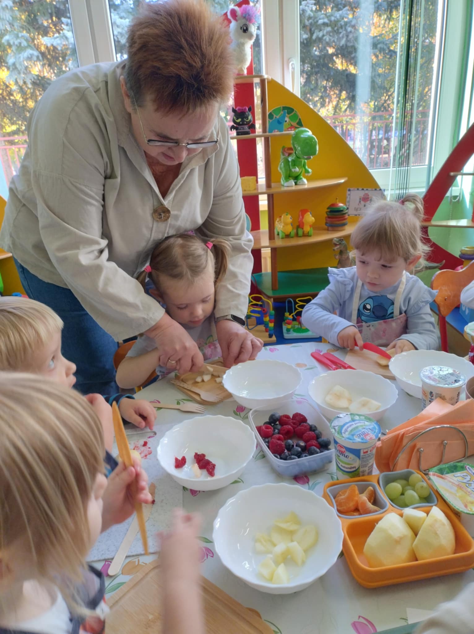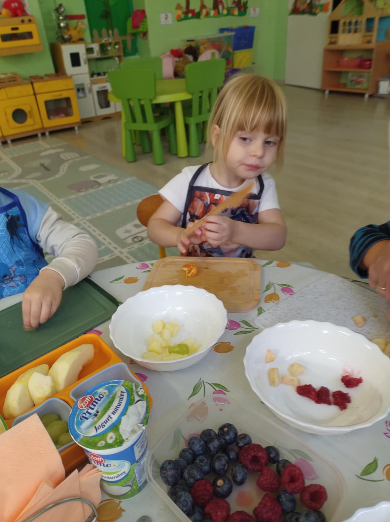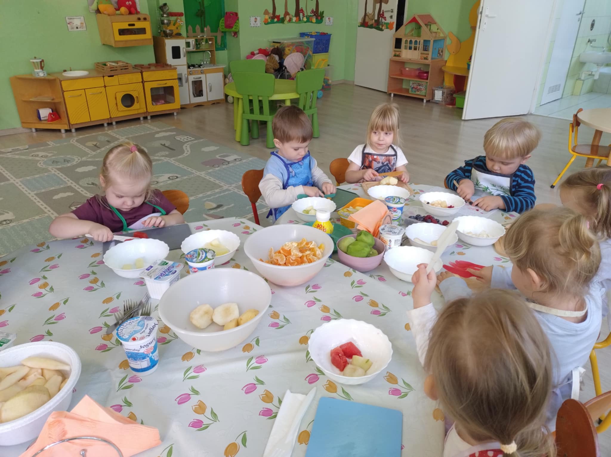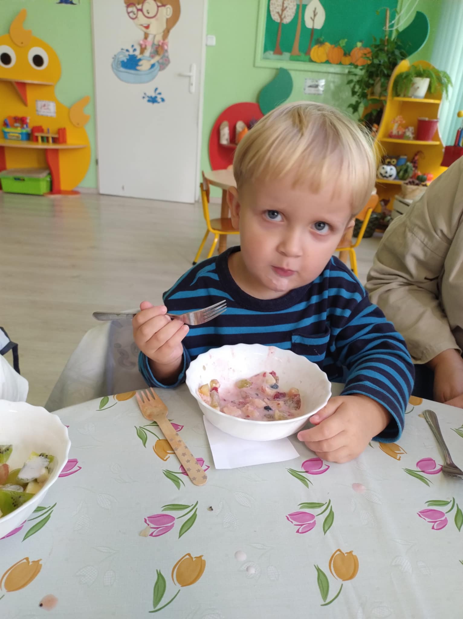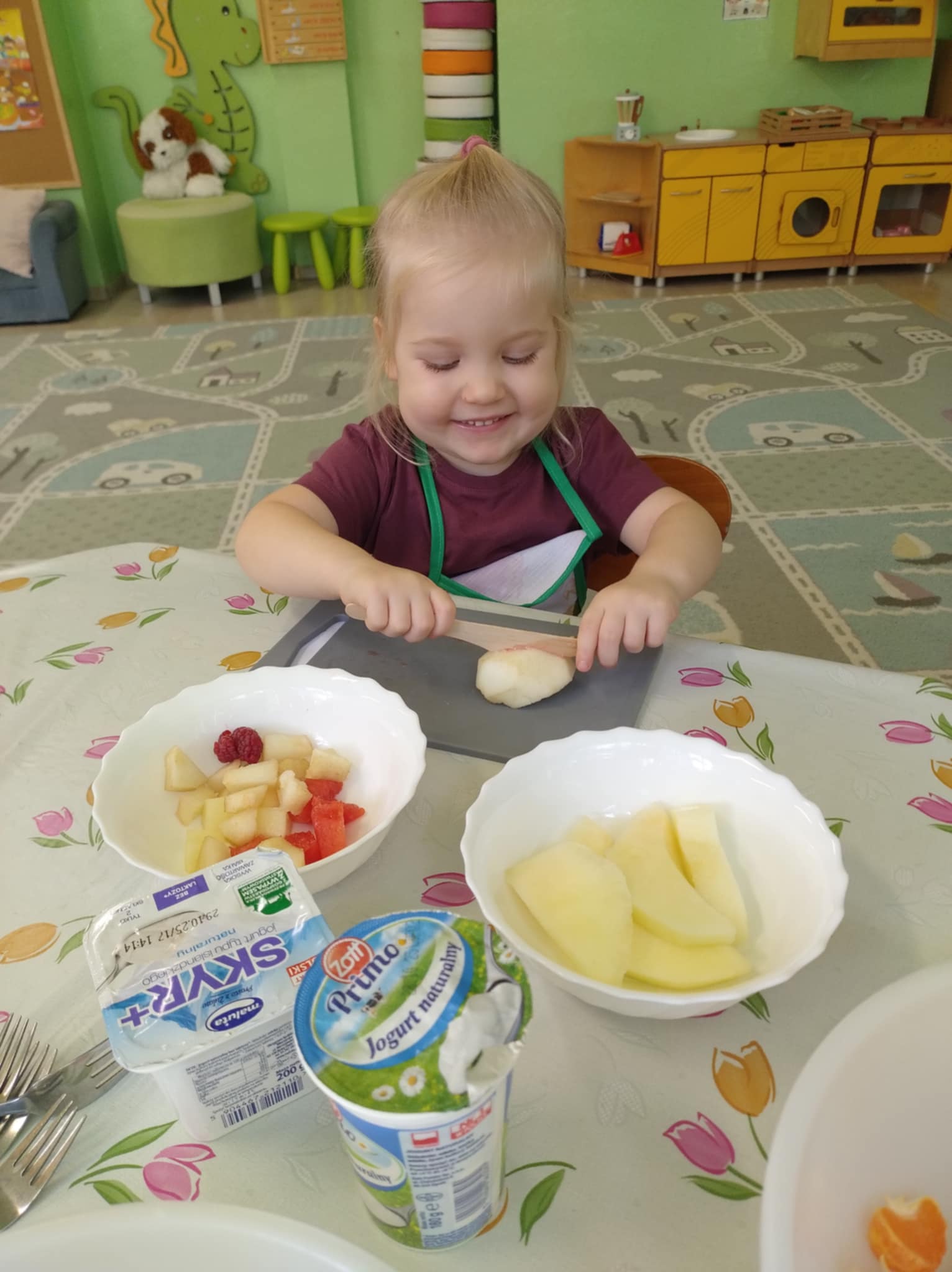 Dziś w naszym przedszkolu przedszkolaki robiły sałatkę owocową!