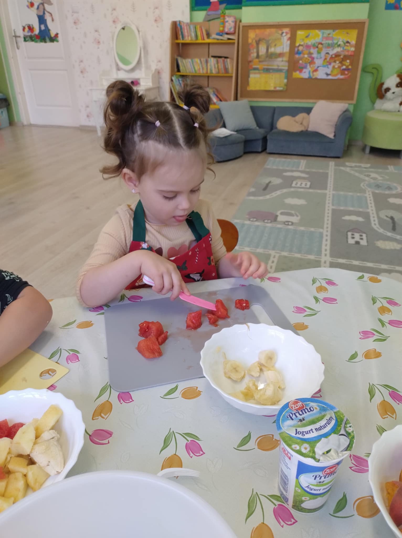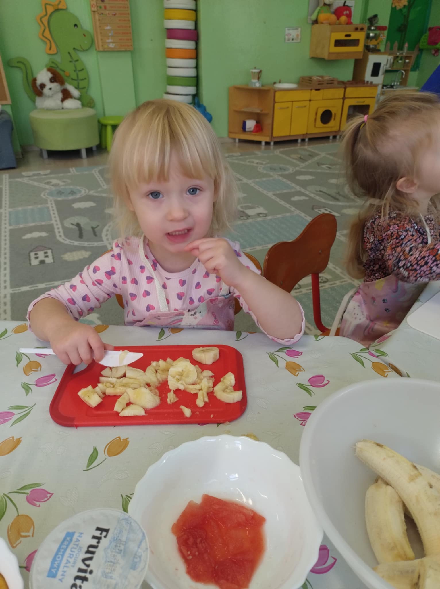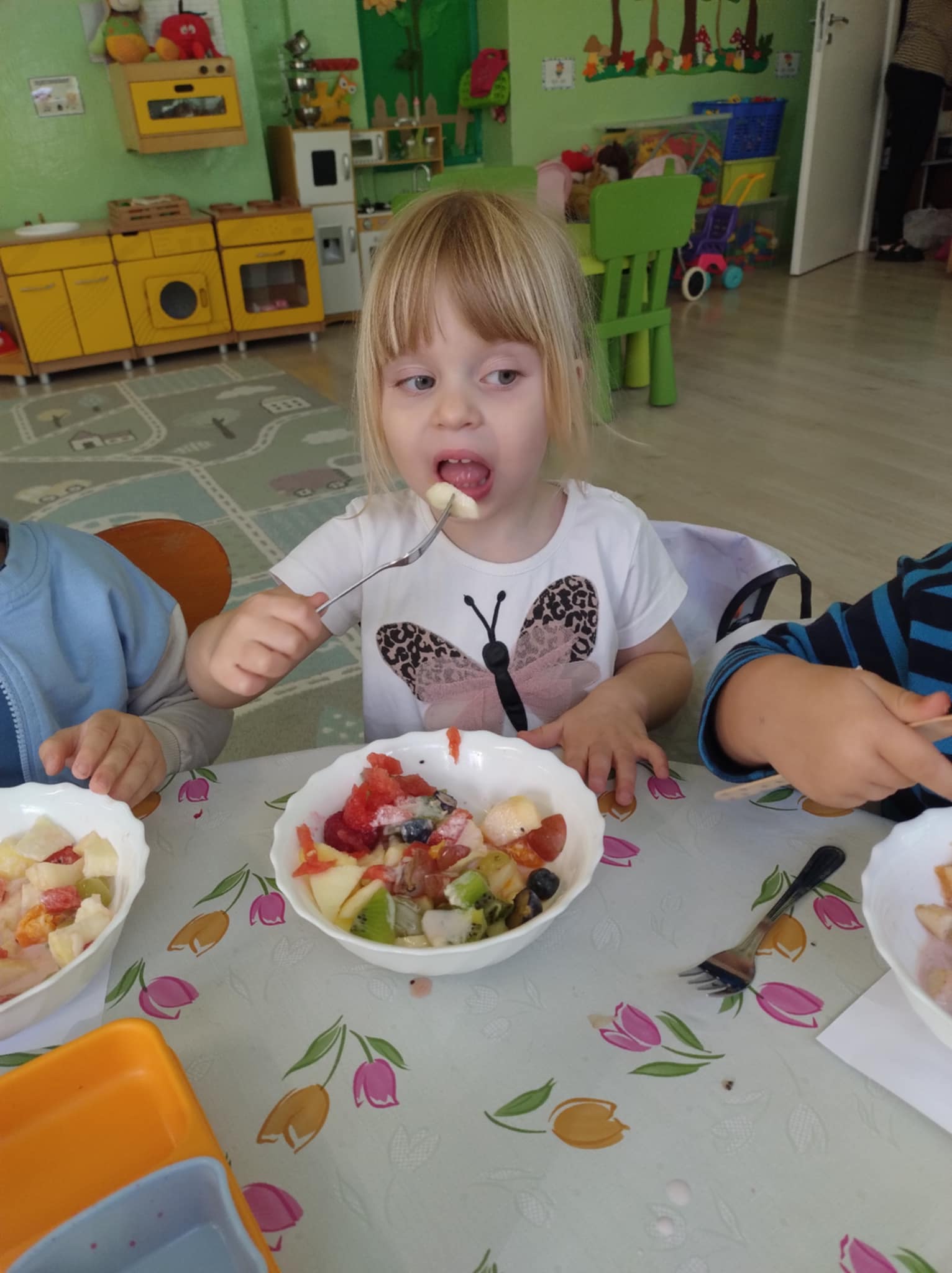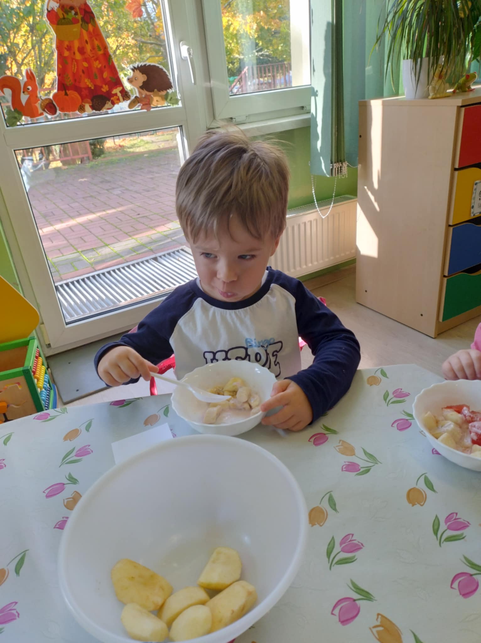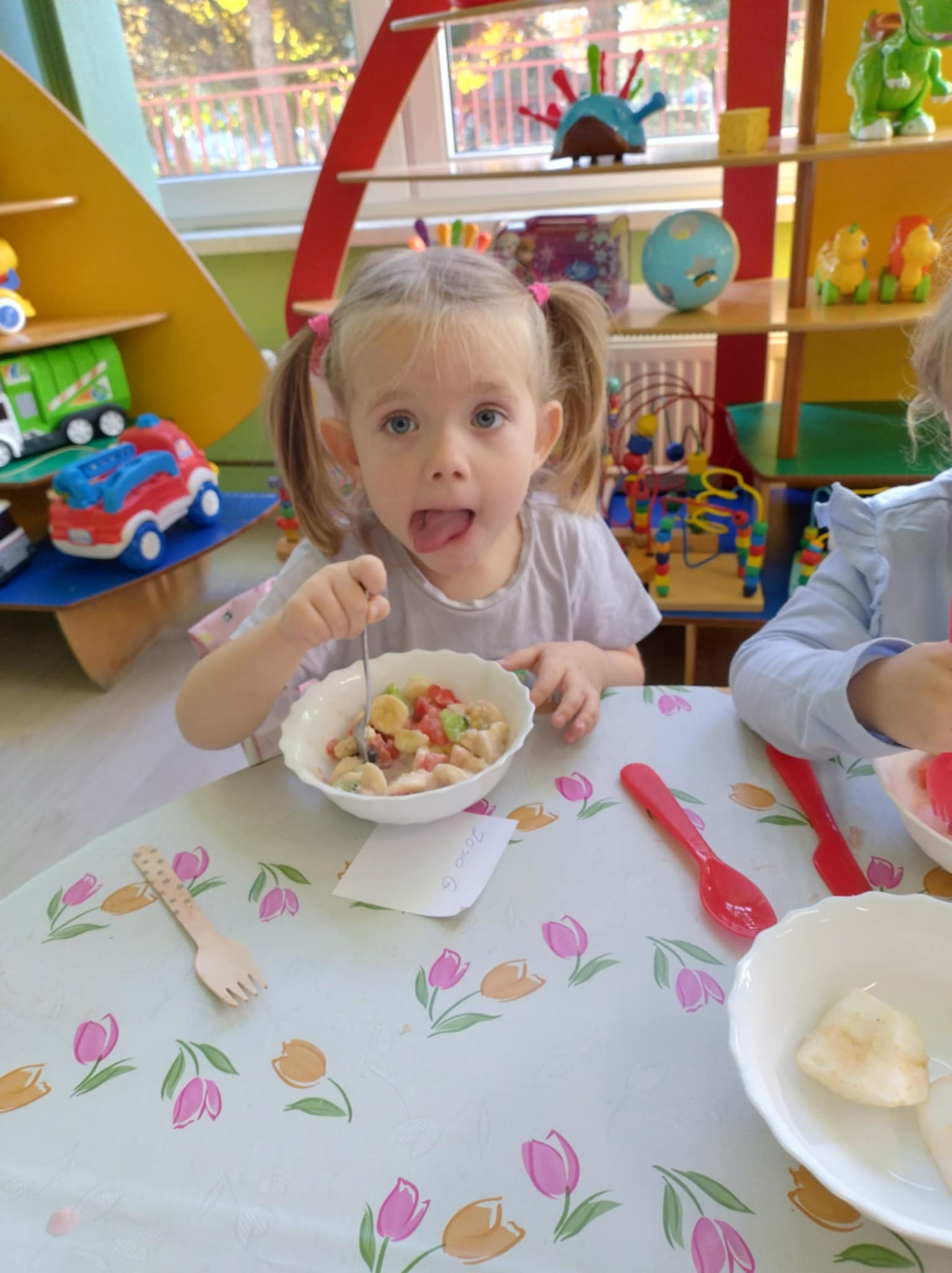 Dziś w naszym przedszkolu przedszkolaki robiły sałatkę owocową!