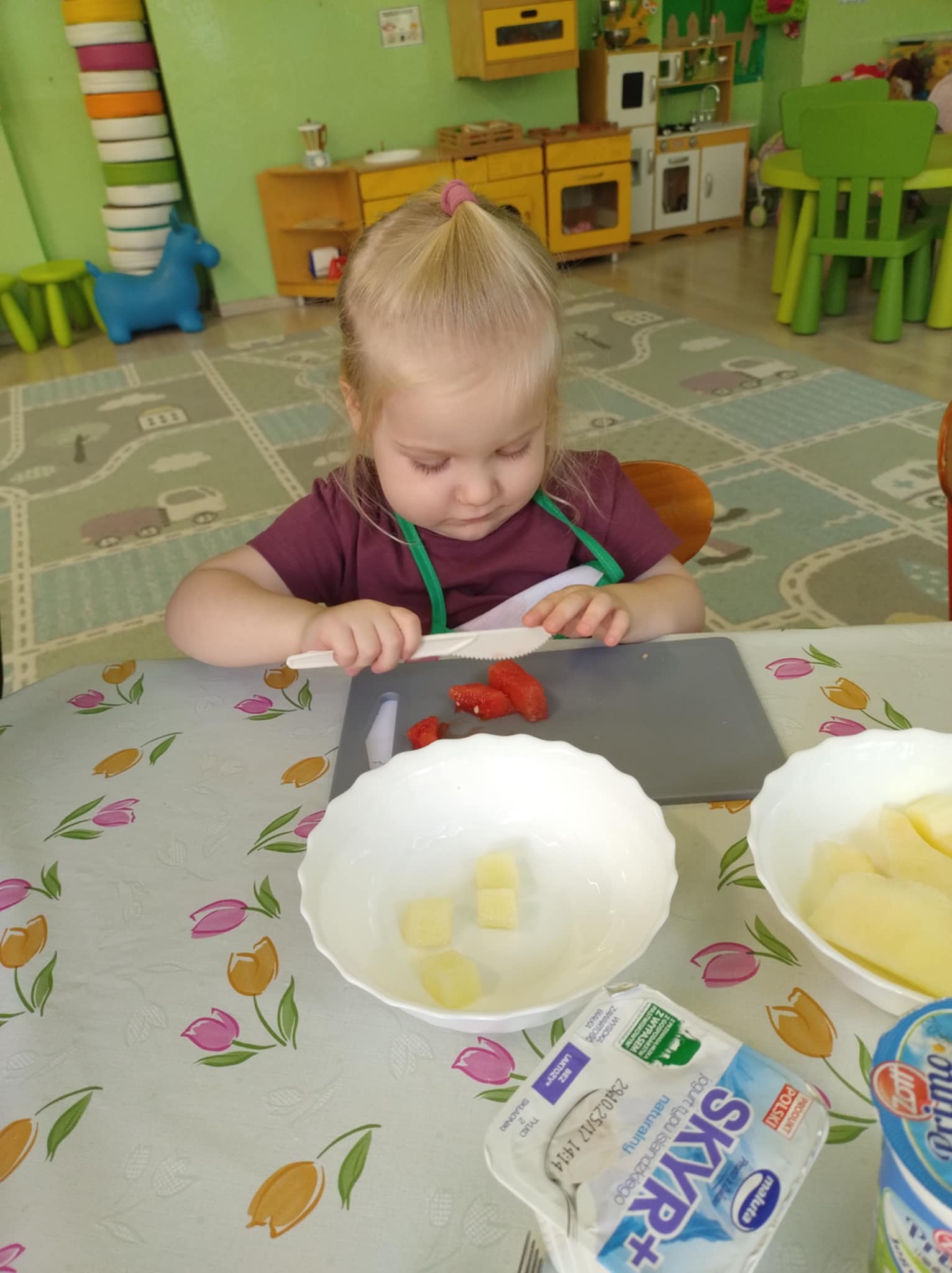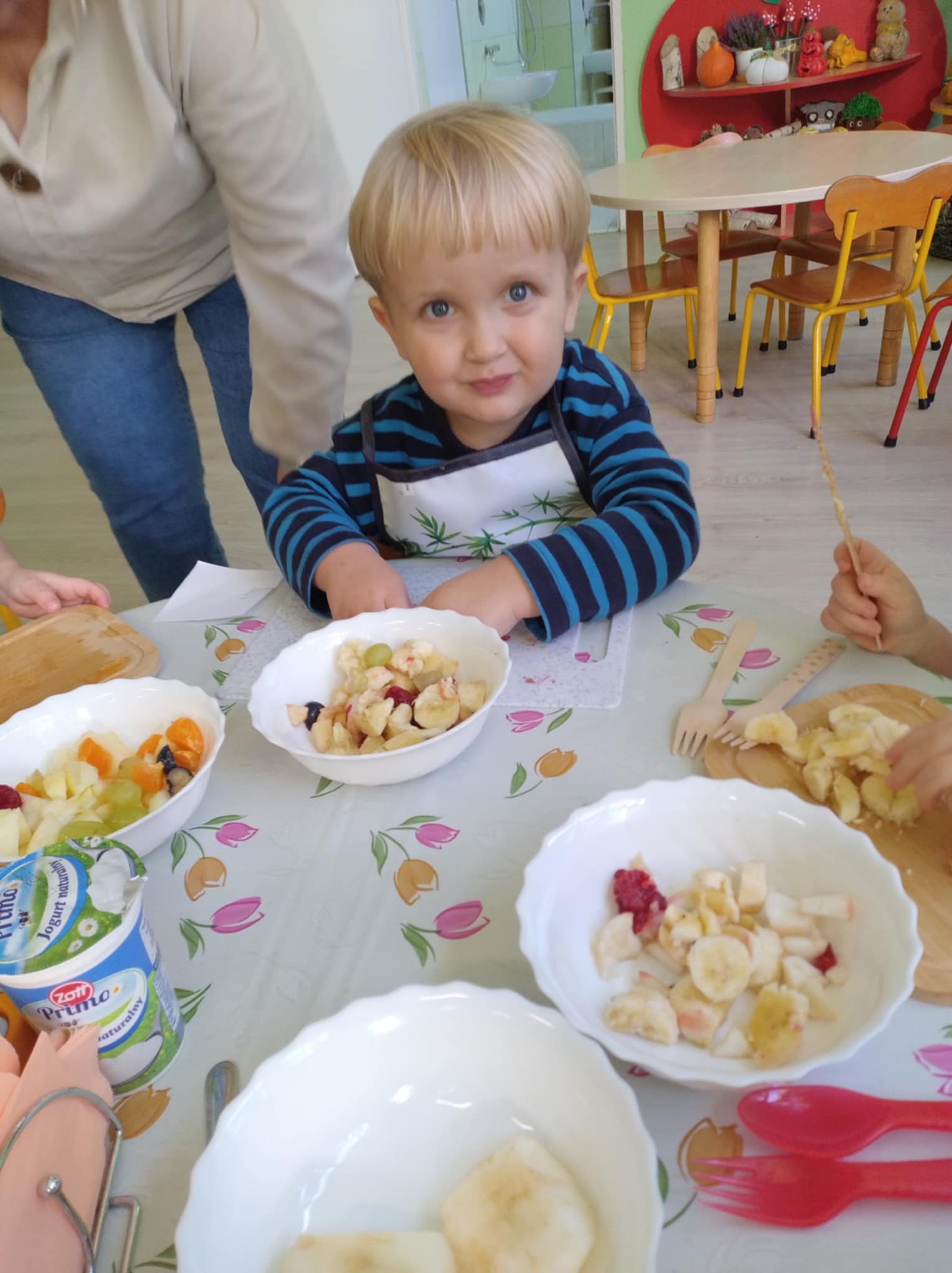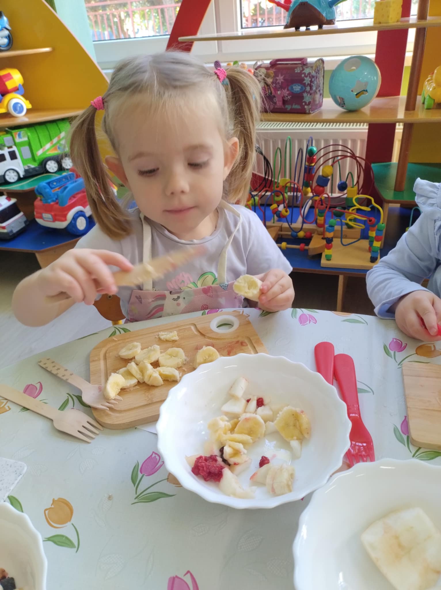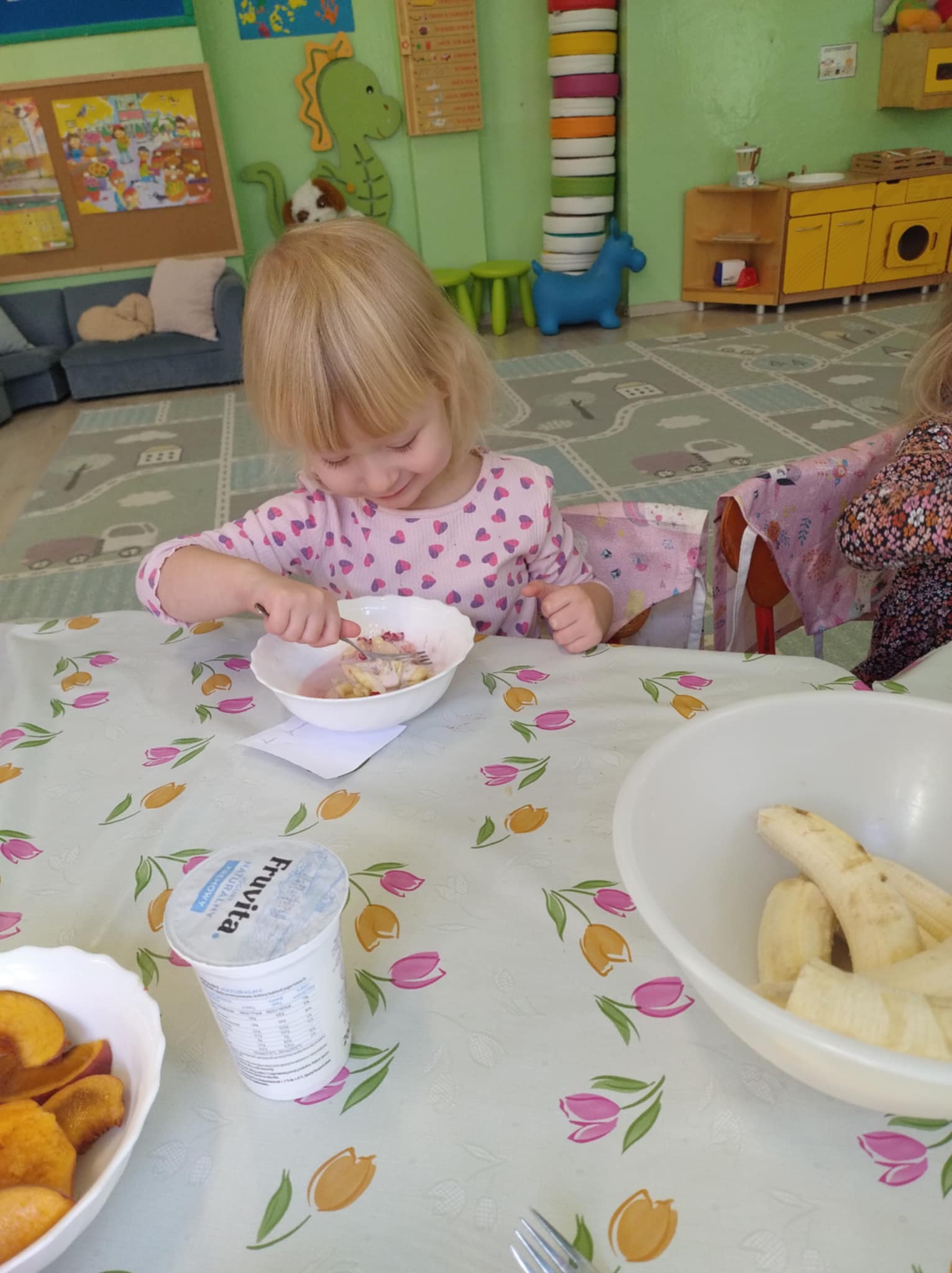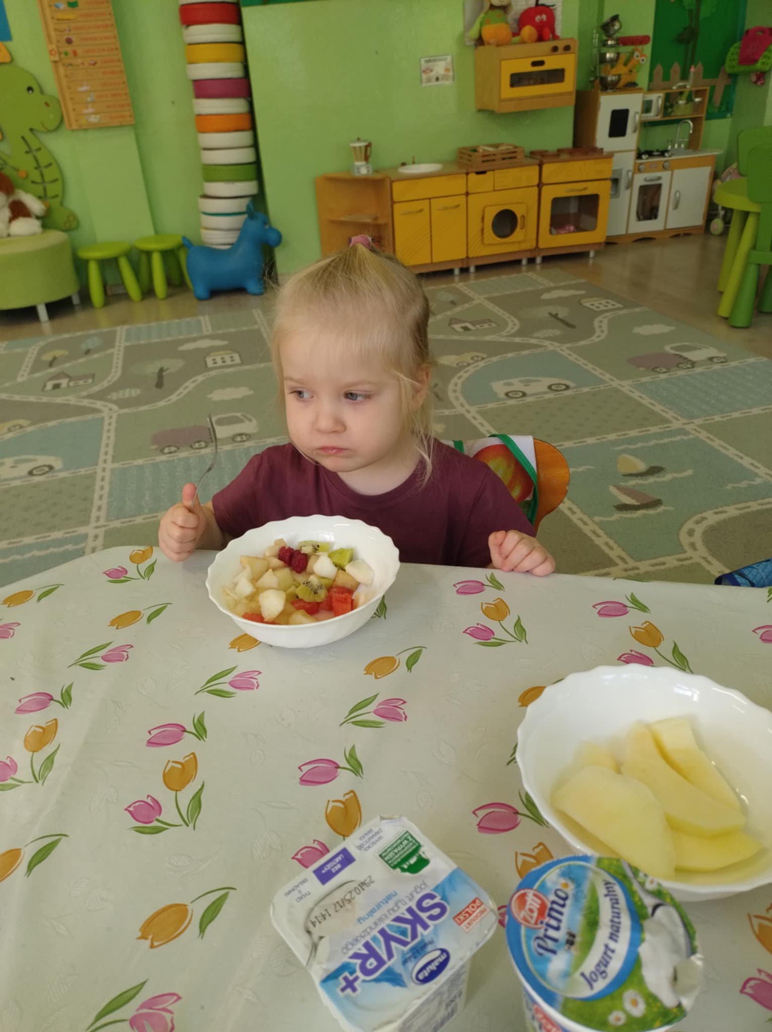 Dziś w naszym przedszkolu przedszkolaki robiły sałatkę owocową!