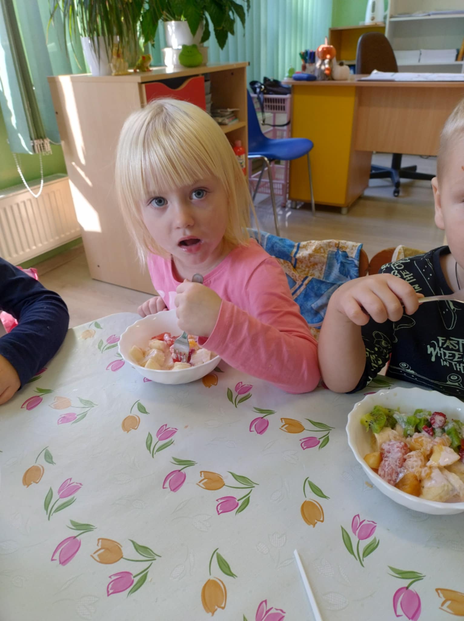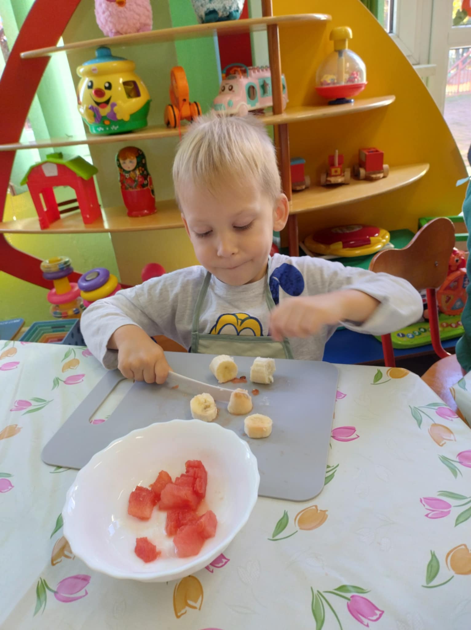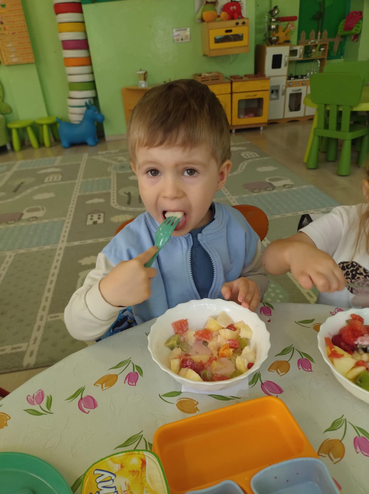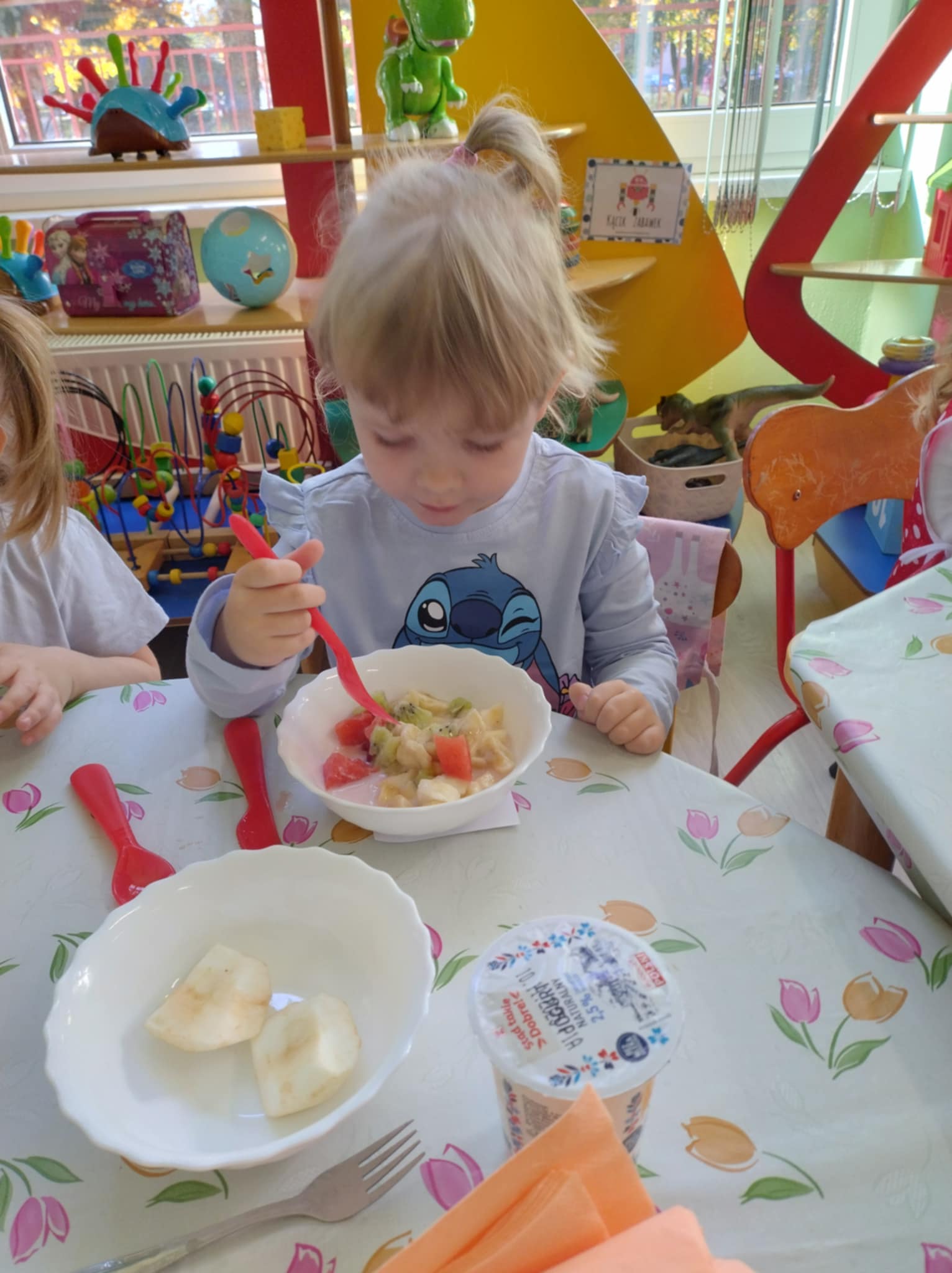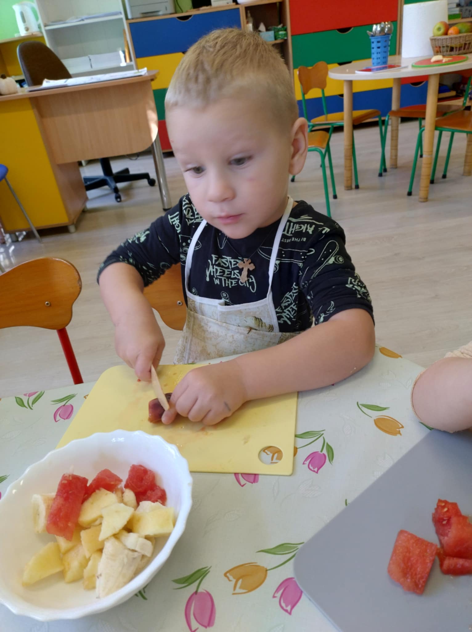 Dziś w naszym przedszkolu przedszkolaki robiły sałatkę owocową!