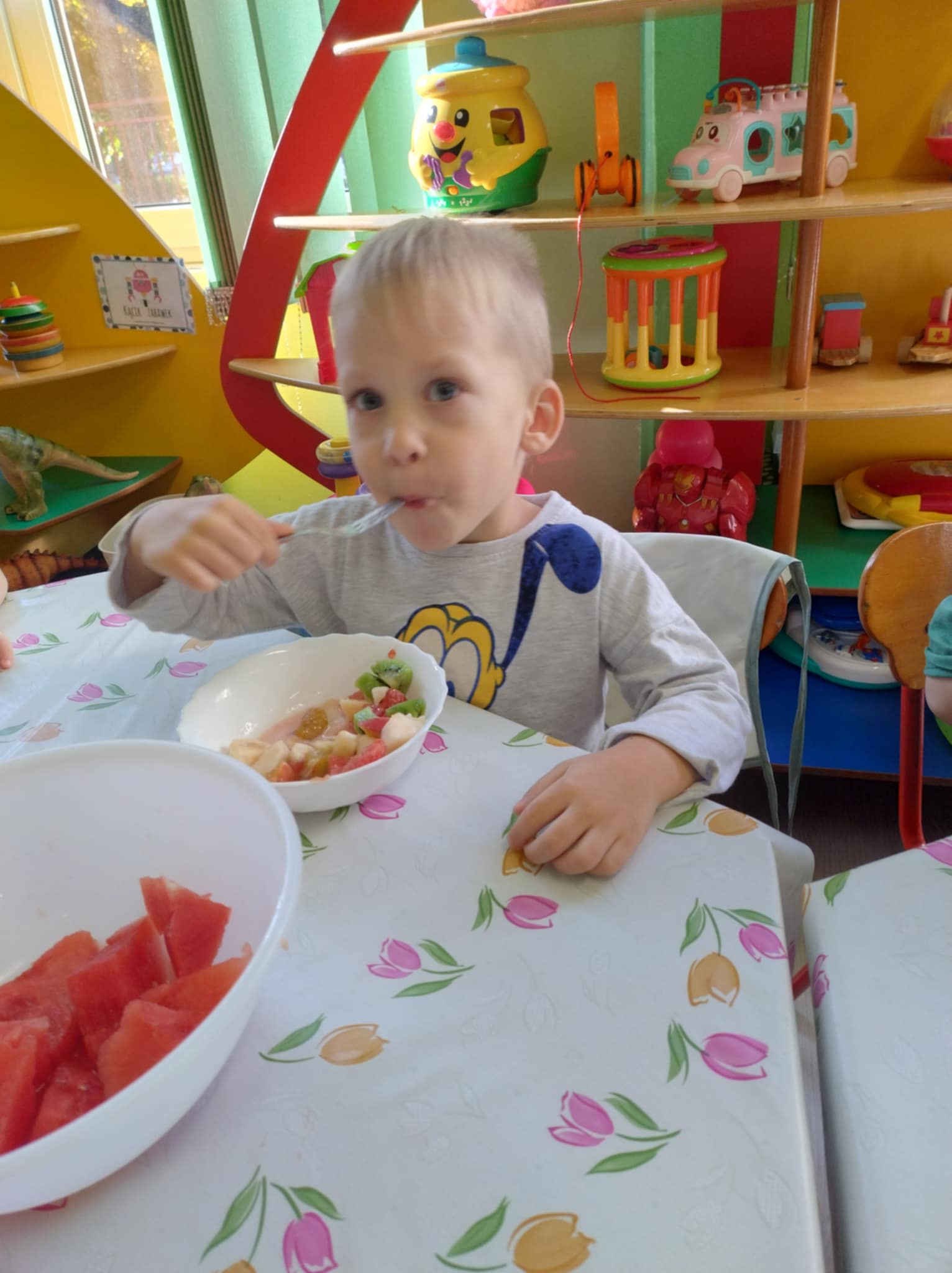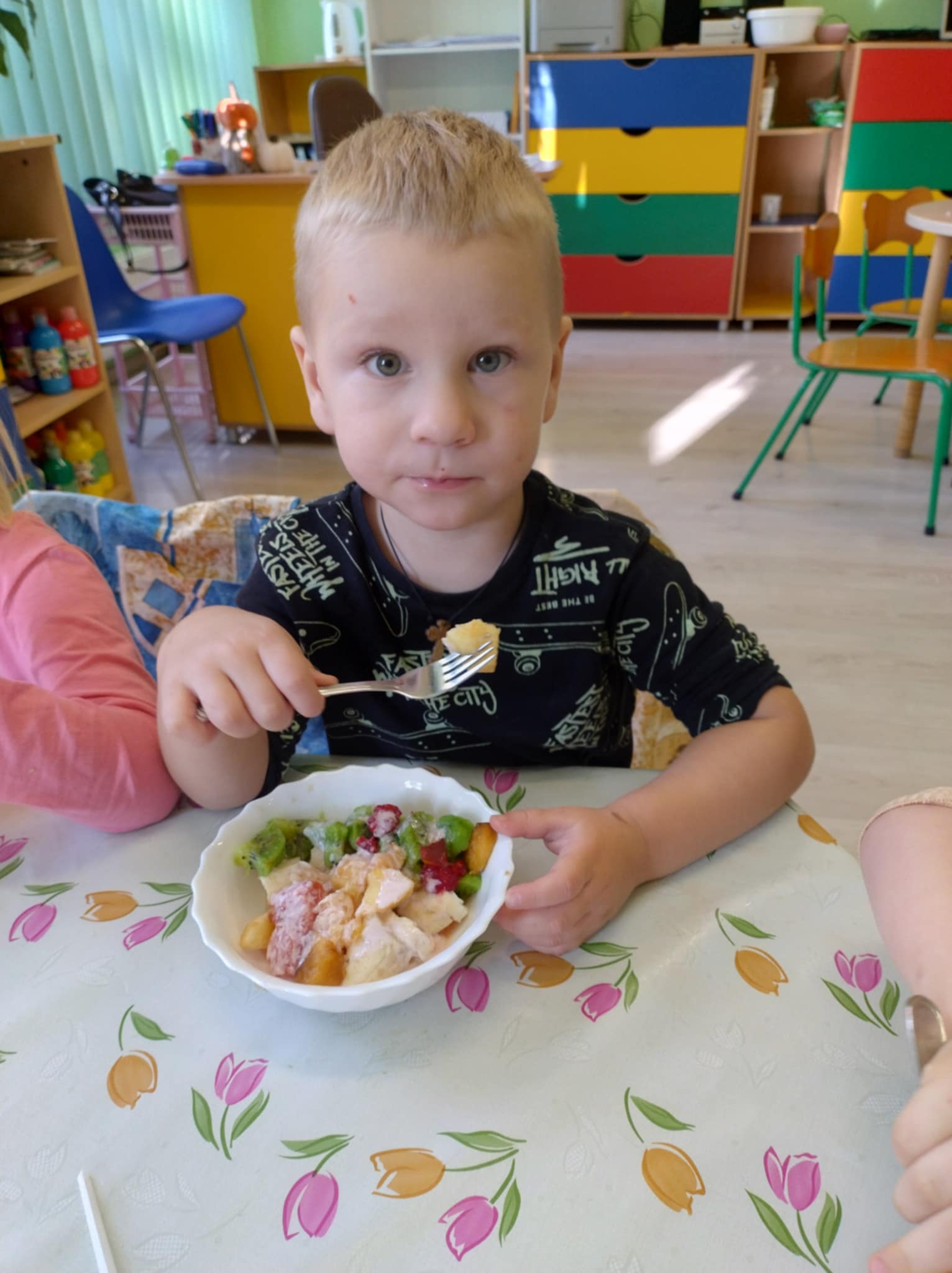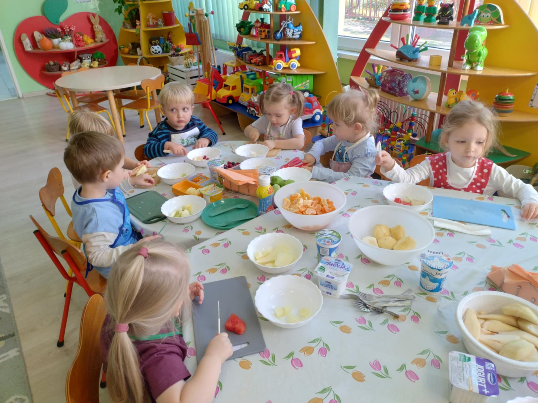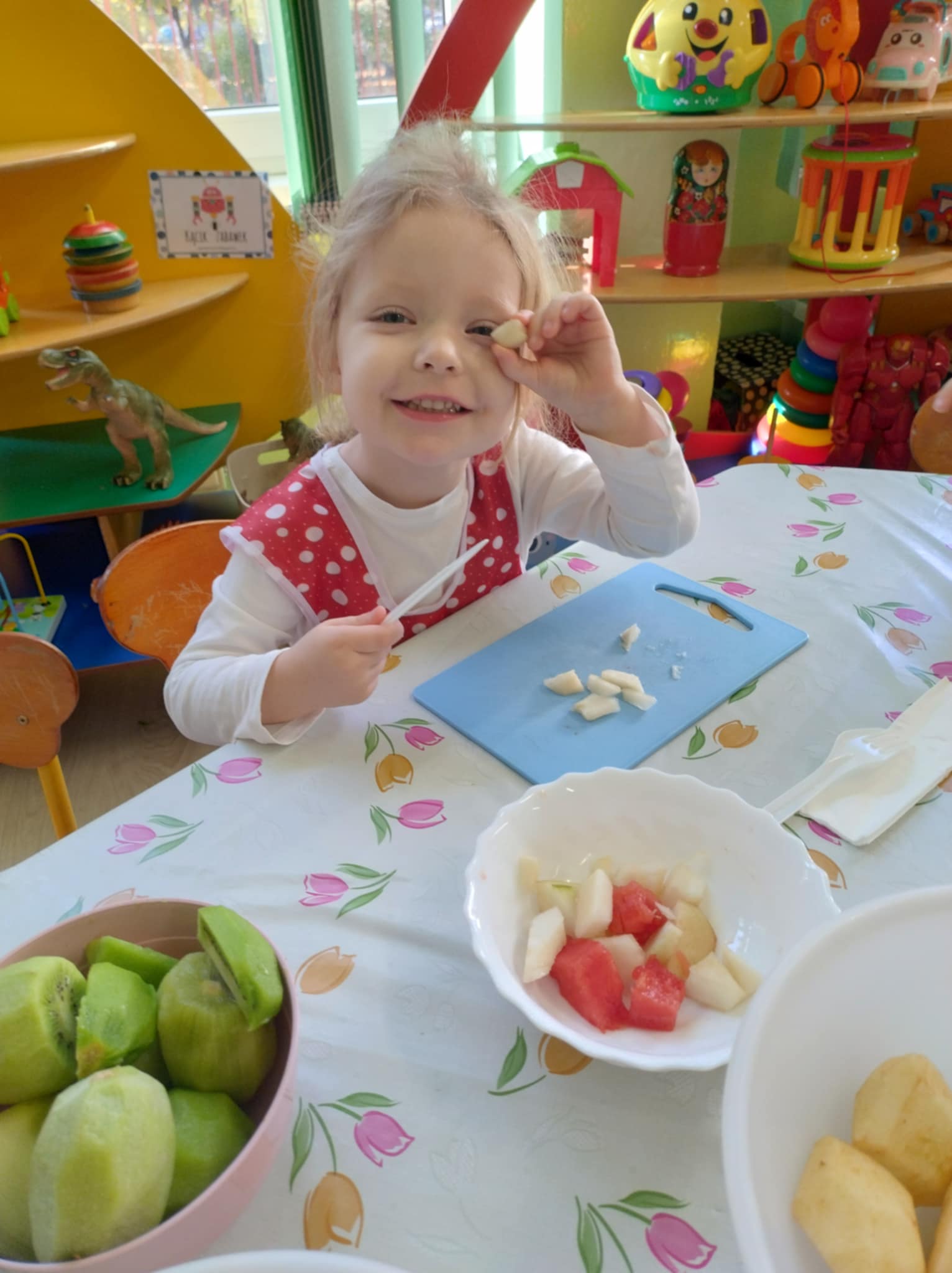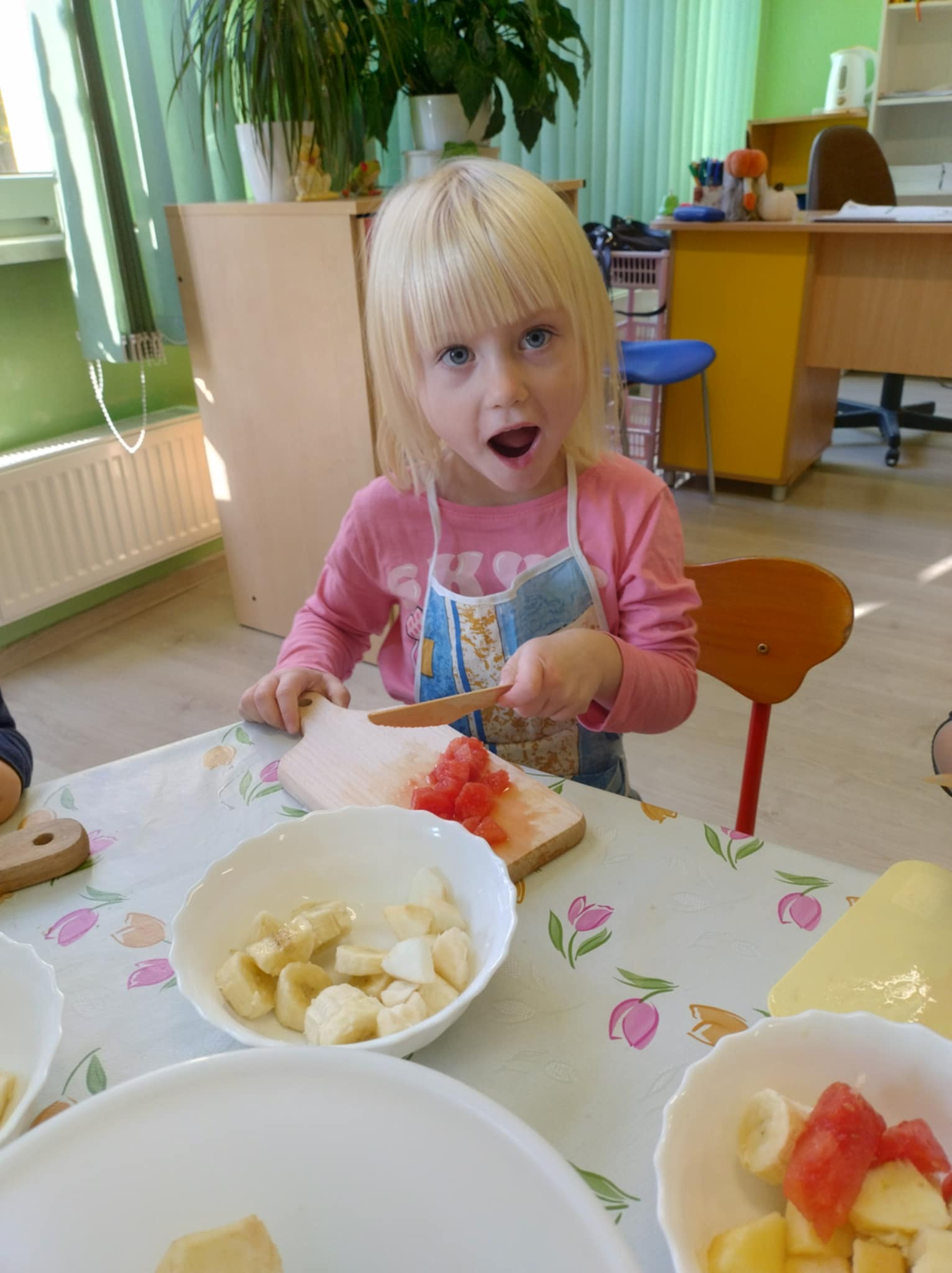 Dziś w naszym przedszkolu przedszkolaki robiły sałatkę owocową!