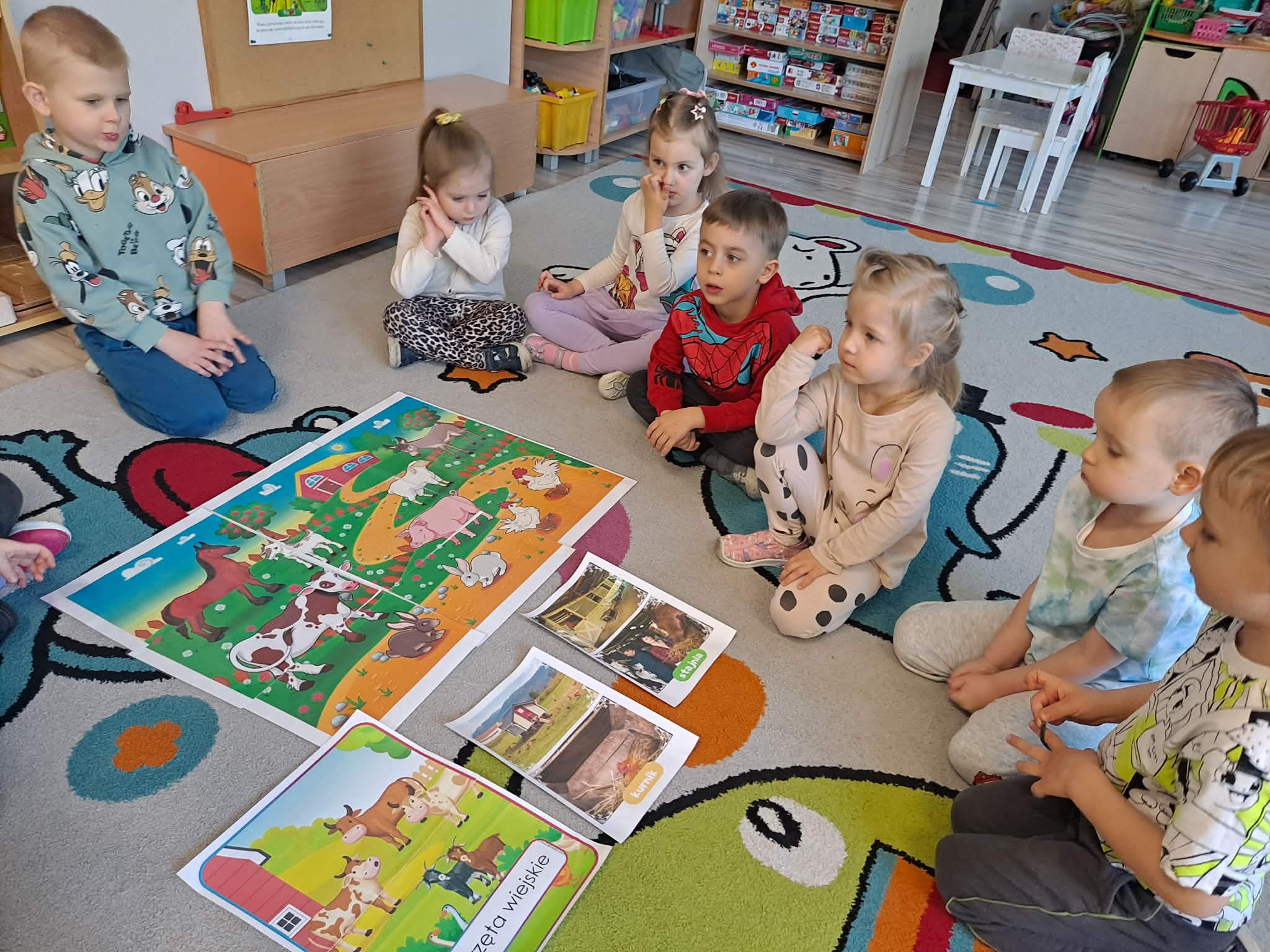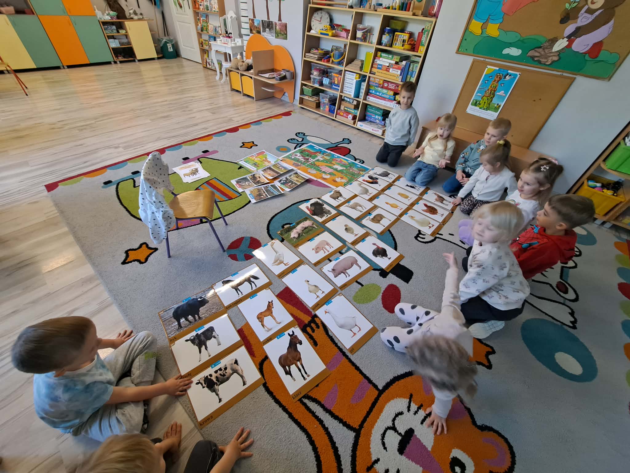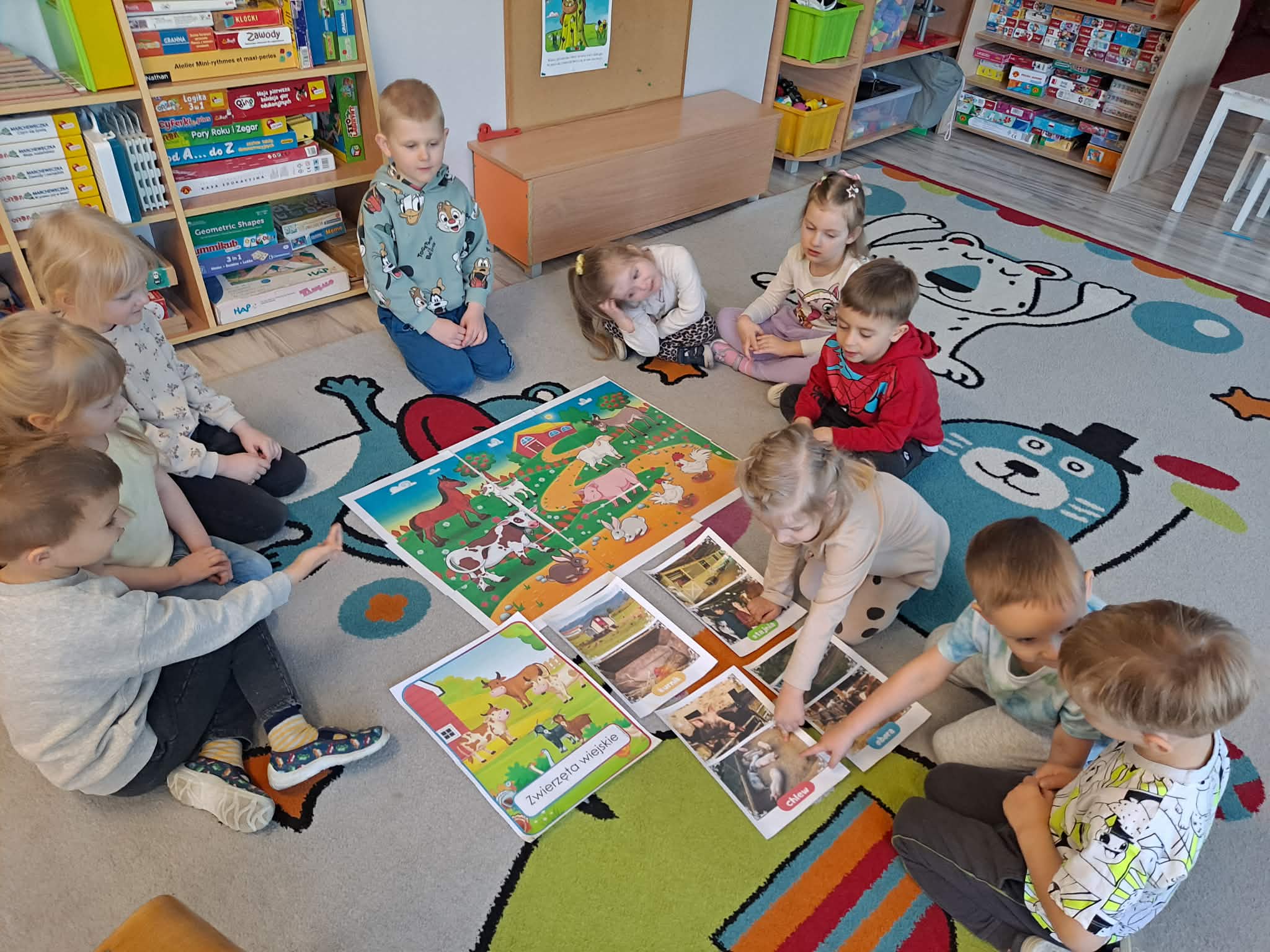 Dzisiejszy dzień w naszej grupie upłynął pod znakiem zwierząt wiejskich. Dzieci z dużym zainteresowaniem poznawały ciekawostki na temat zwierząt gospodarskich – dowiedziały się, jak wyglądają, jakie wydają odgłosy oraz jakie pełnią ważne role w życiu człowieka. Wspólnie rozmawialiśmy także o tym, co otrzymujemy dzięki zwierzętom i dlaczego warto o nie dbać.