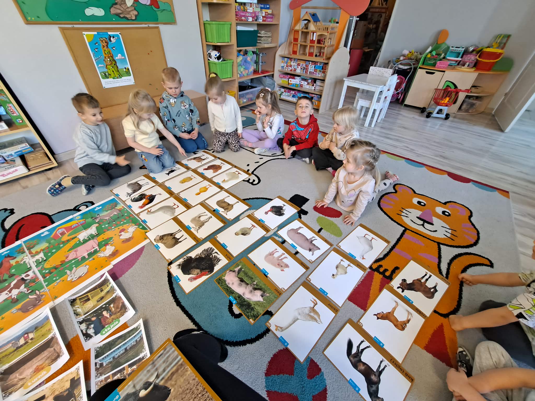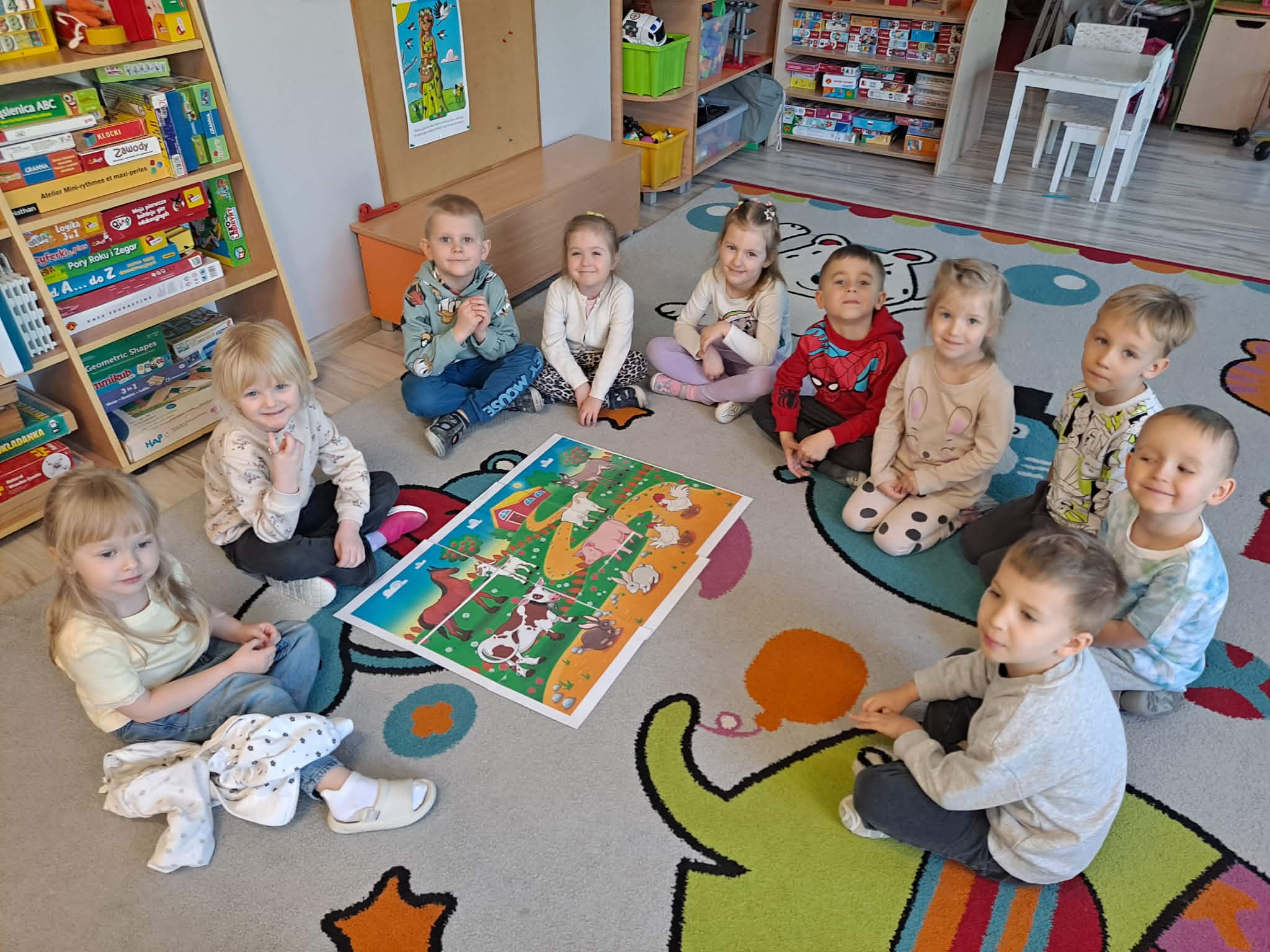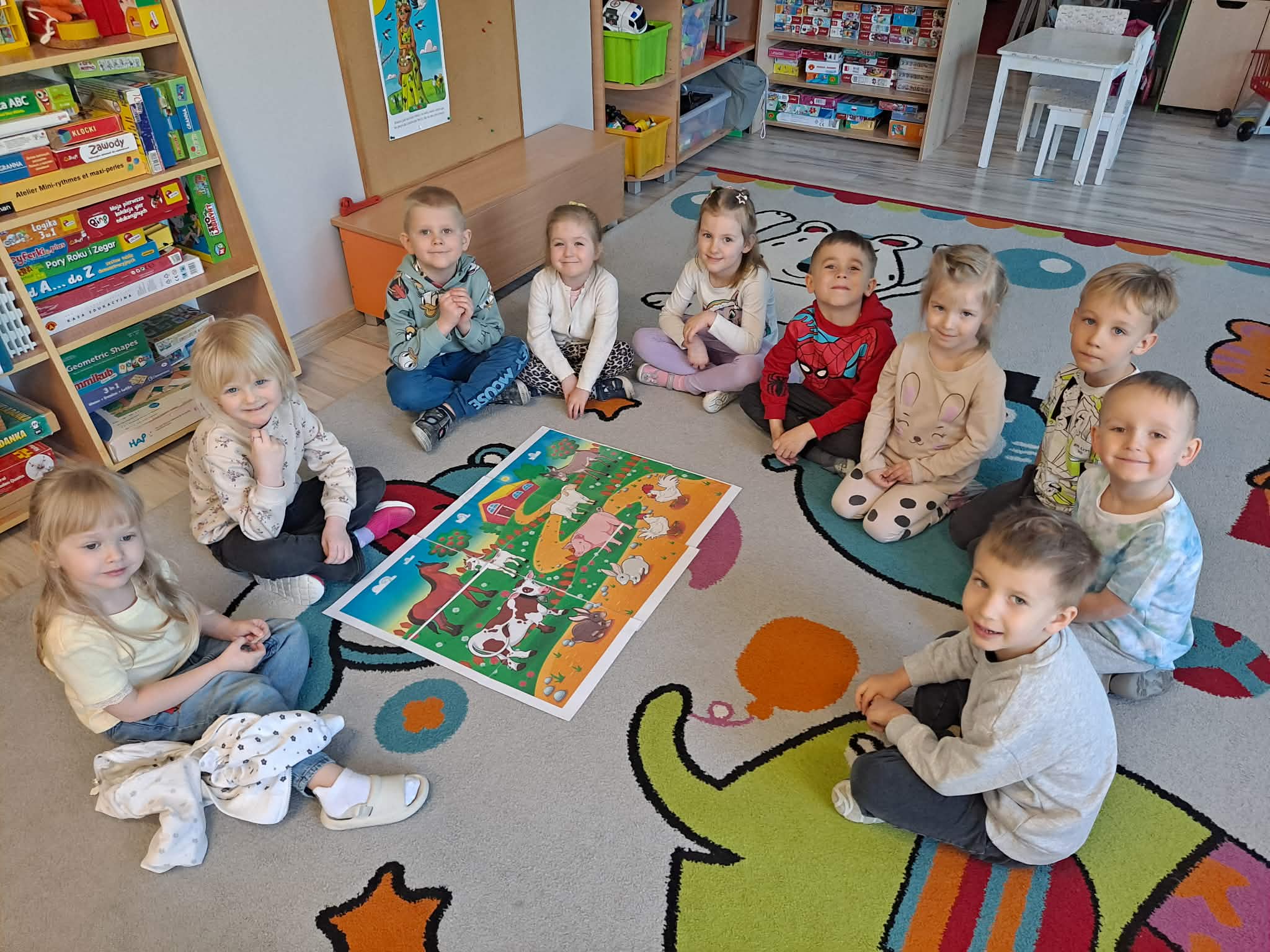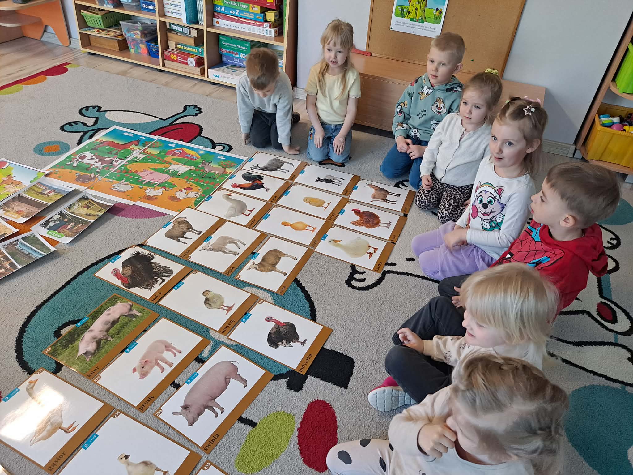 Dzisiejszy dzień w naszej grupie upłynął pod znakiem zwierząt wiejskich. Dzieci z dużym zainteresowaniem poznawały ciekawostki na temat zwierząt gospodarskich – dowiedziały się, jak wyglądają, jakie wydają odgłosy oraz jakie pełnią ważne role w życiu człowieka. Wspólnie rozmawialiśmy także o tym, co otrzymujemy dzięki zwierzętom i dlaczego warto o nie dbać.
